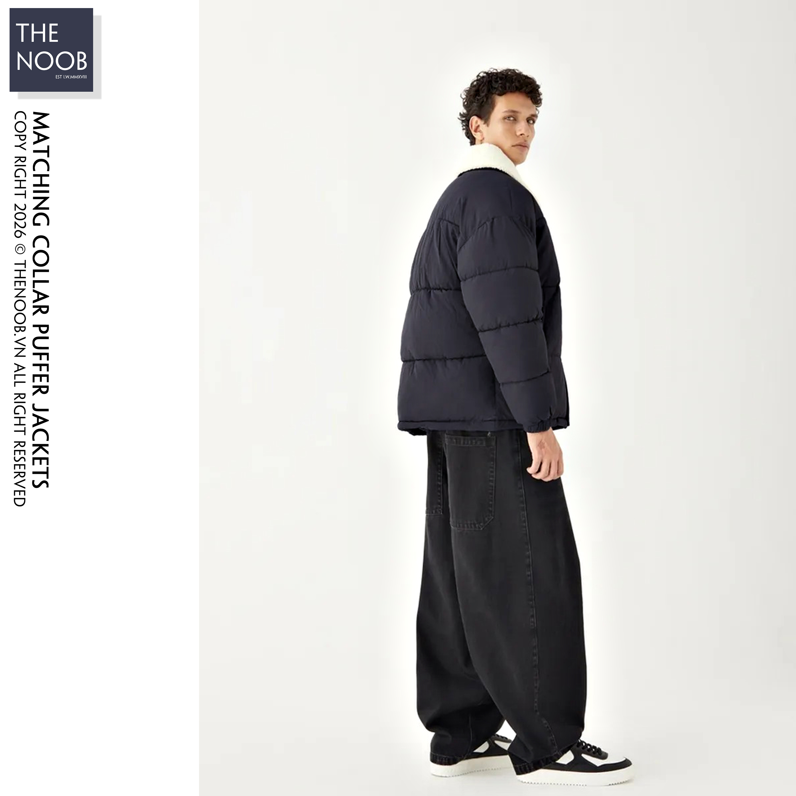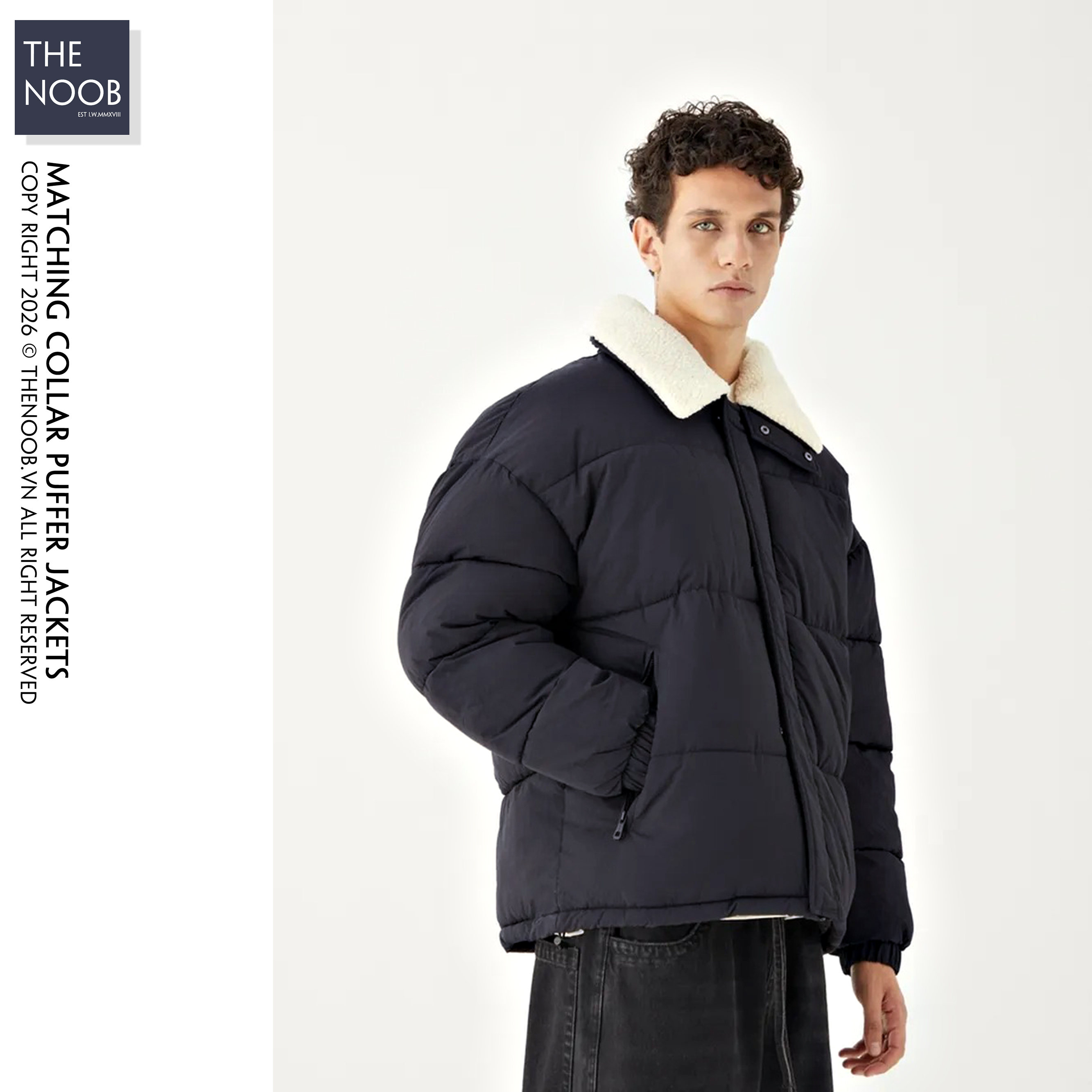 - ECRU - OVERSIZED MATCHING COLLAR PUFFER JACKET