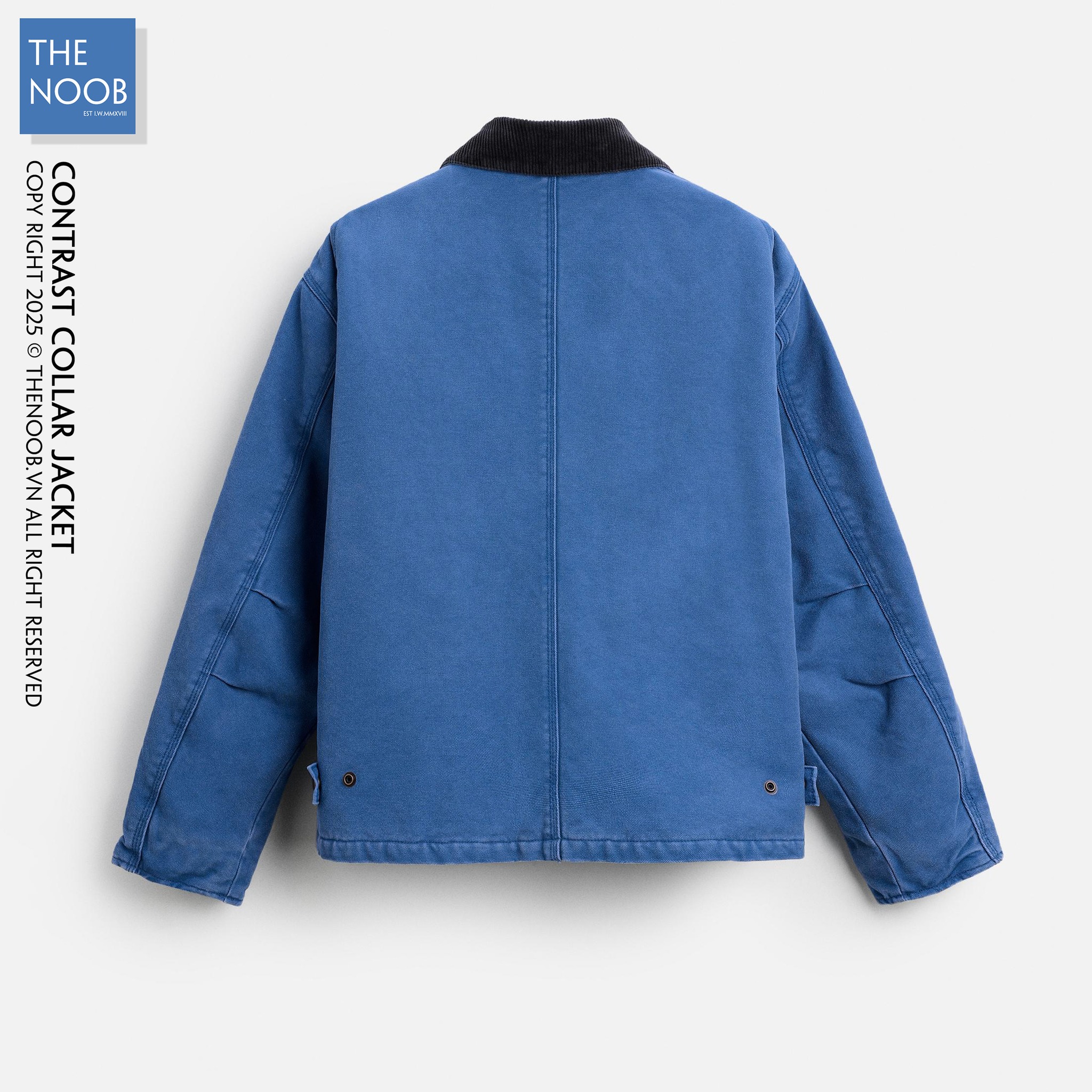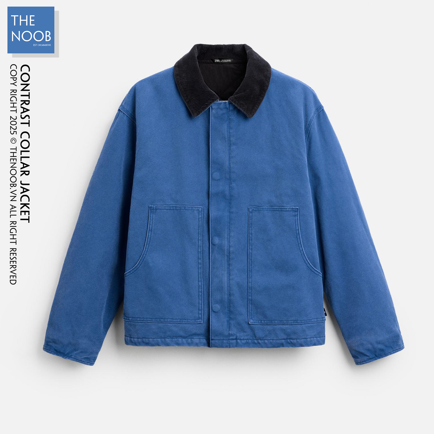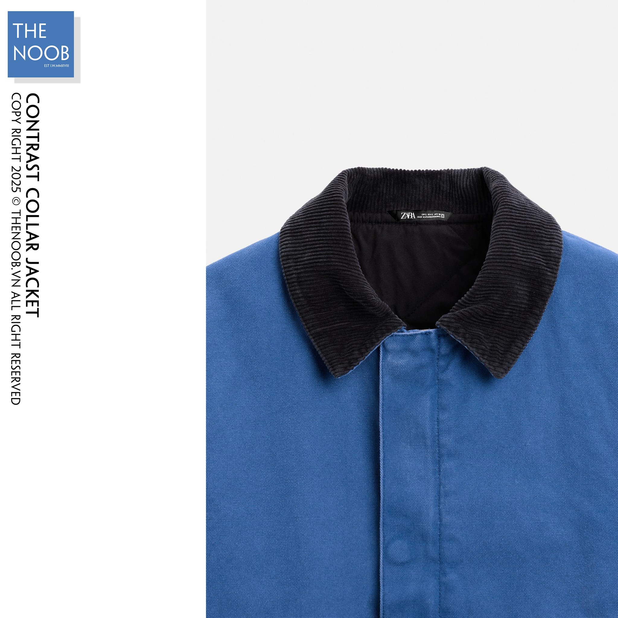 - Áo chất liệu bề mặt vải denim dầy dạn 100% cotton, mặt trong trần bông trám với lớp lót dù có thành phần chất liệu 65% polyester RSC - 35% cotton . Cổ áo phối vải nhung màu đen xanh tạo điểm nhấn