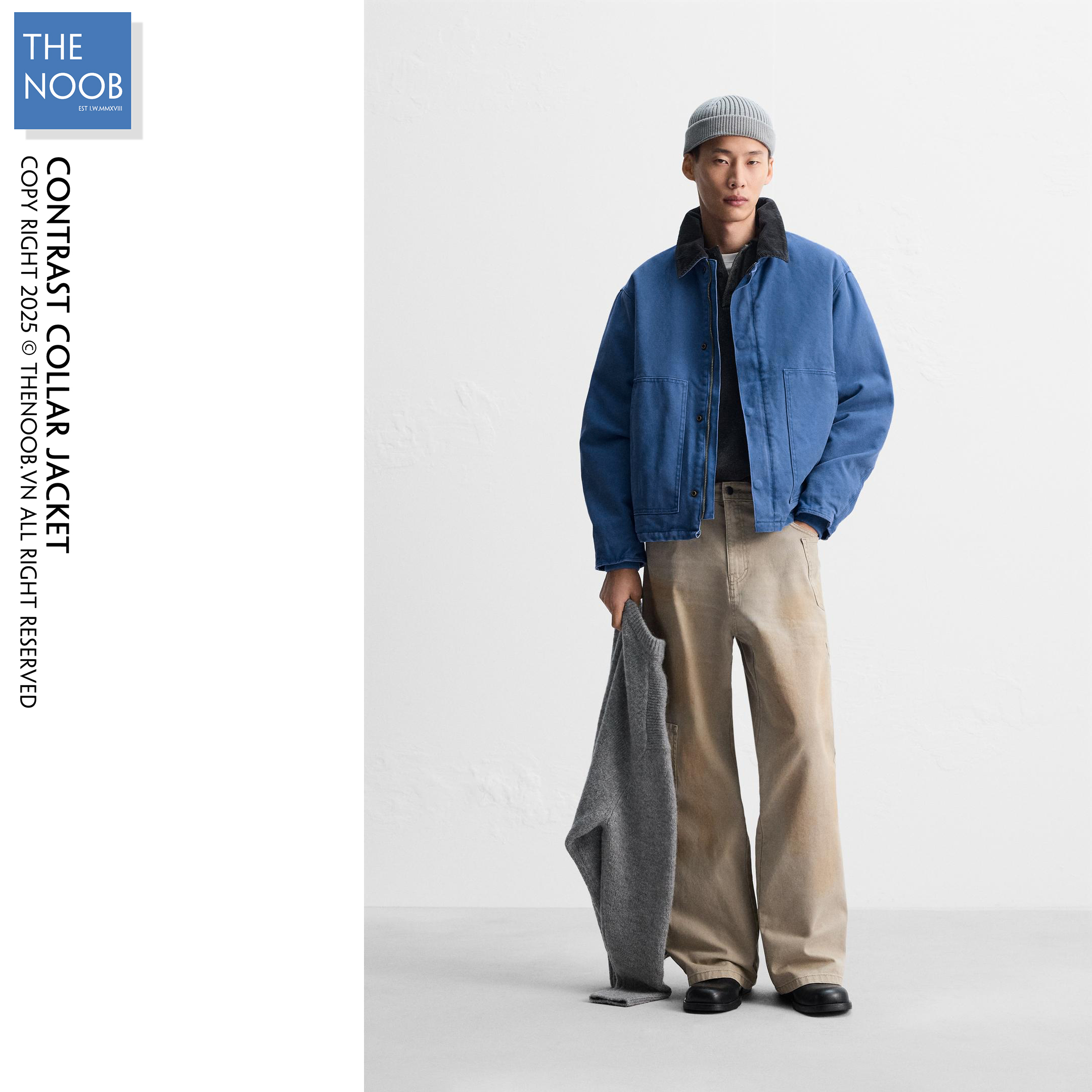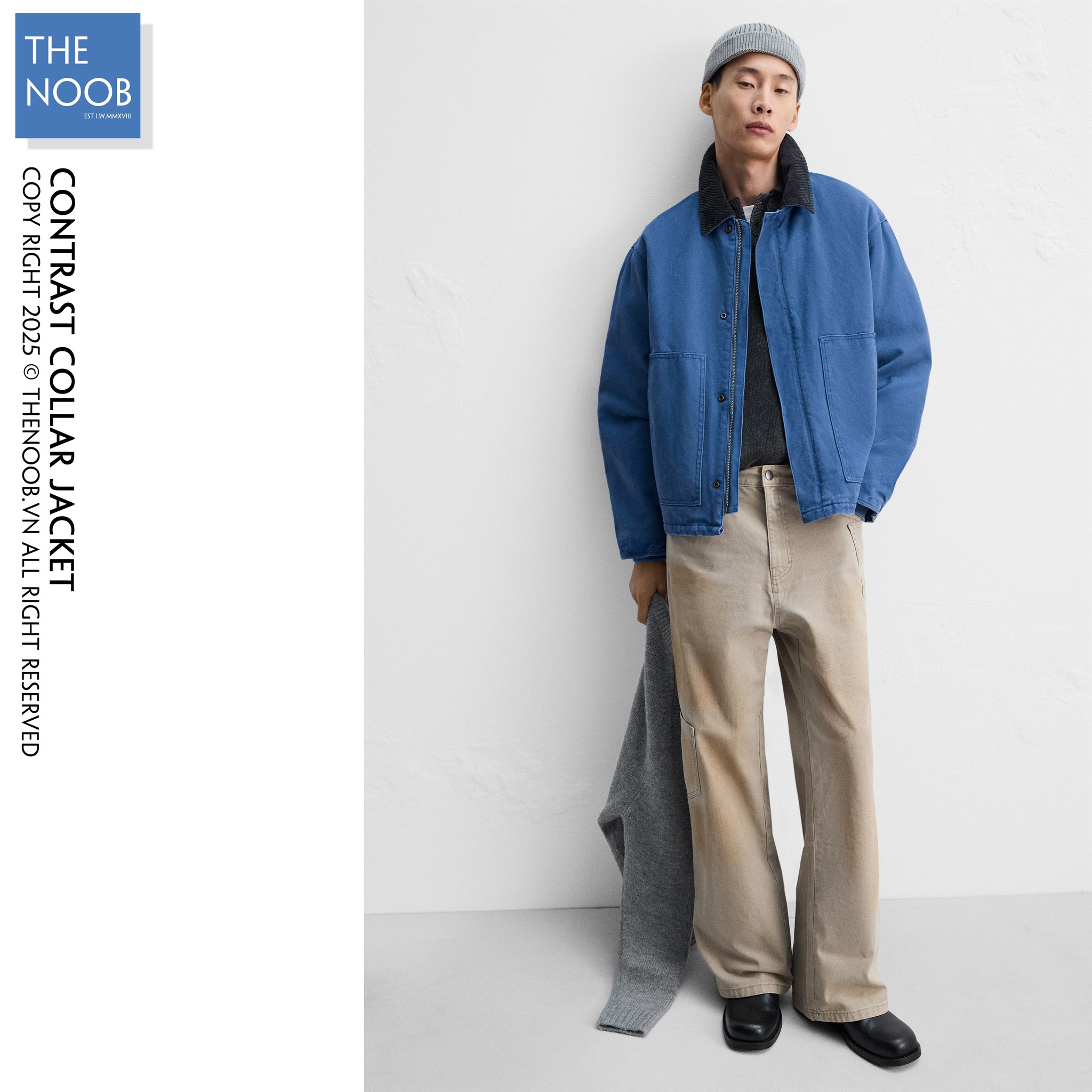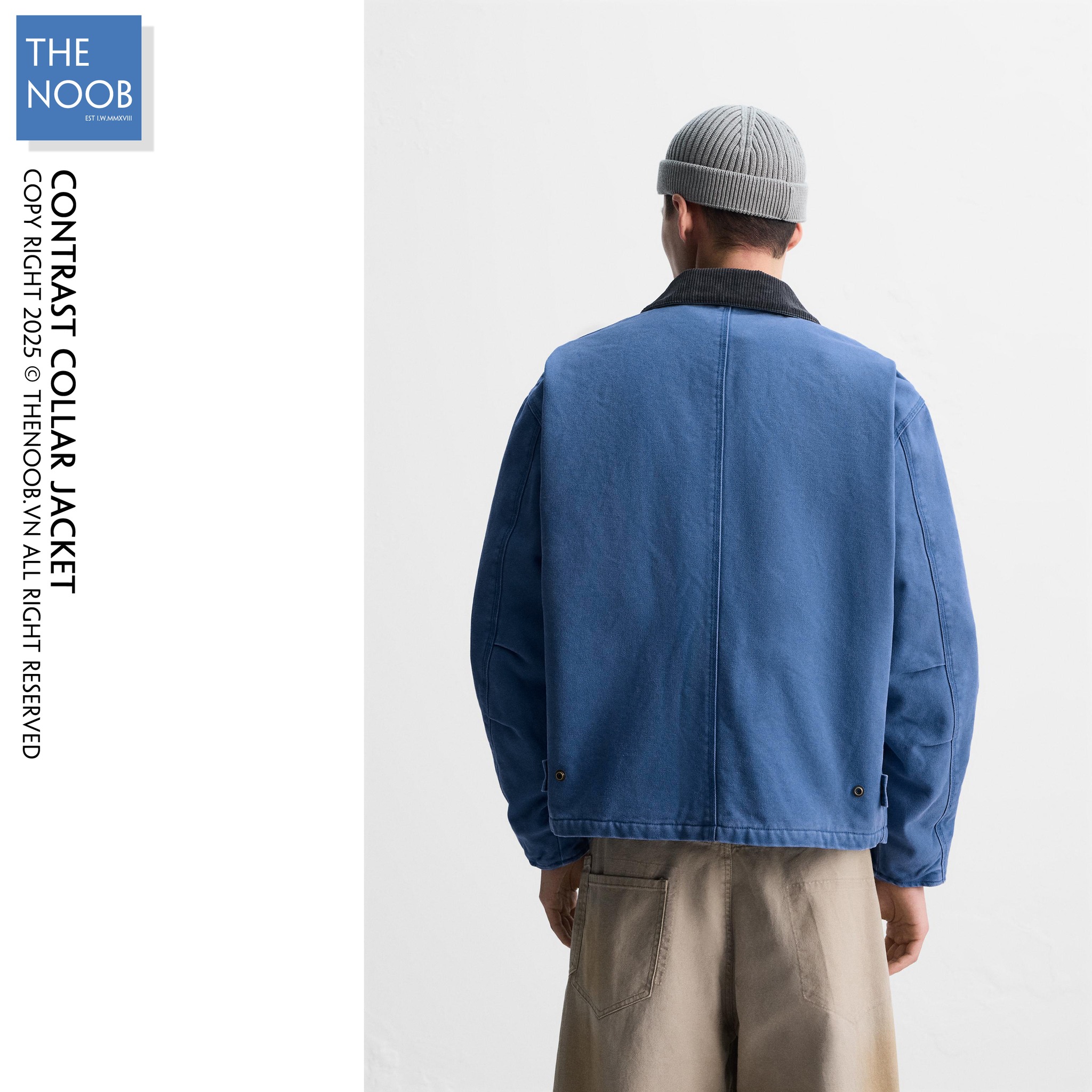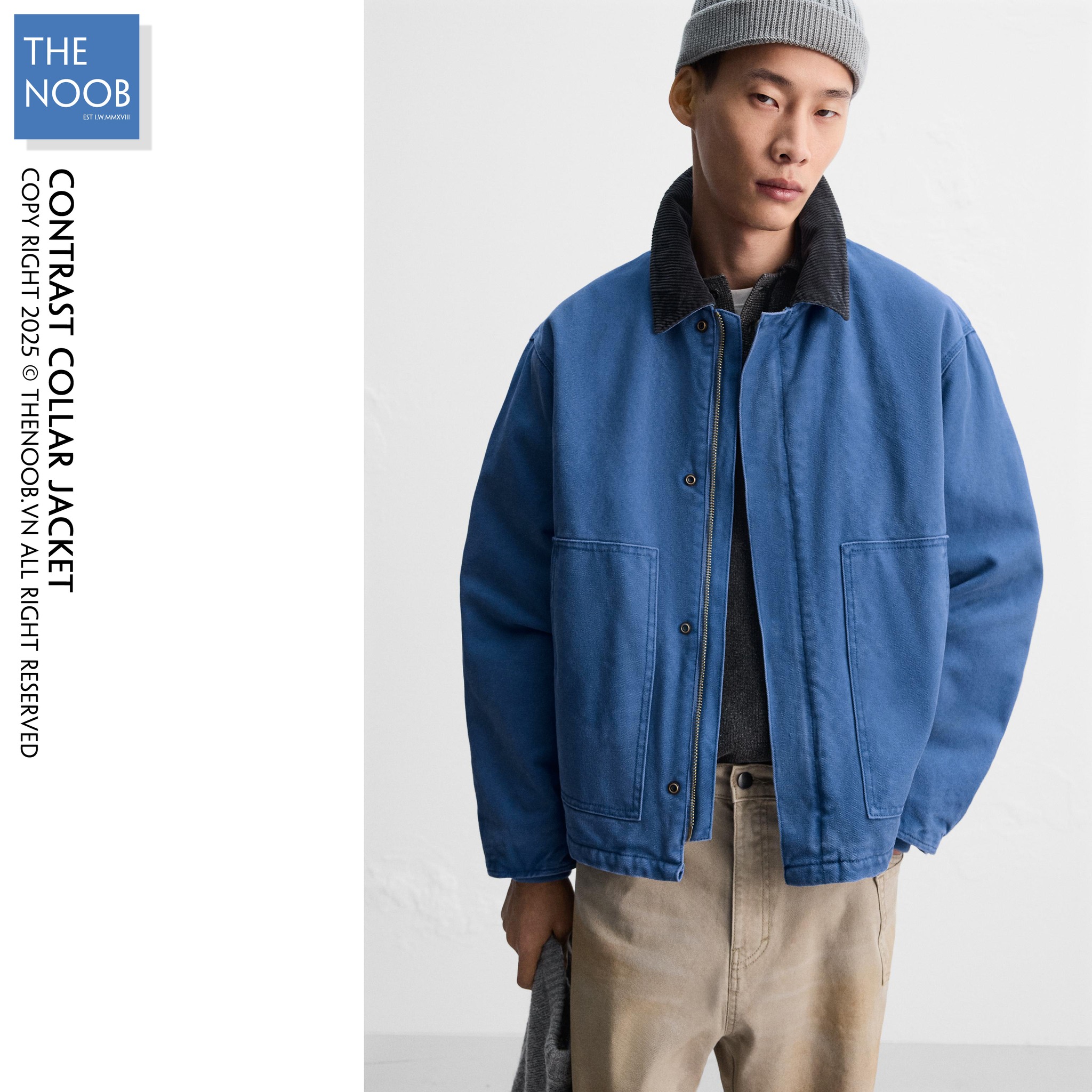 - Áo chất liệu bề mặt vải denim dầy dạn 100% cotton, mặt trong trần bông trám với lớp lót dù có thành phần chất liệu 65% polyester RSC - 35% cotton . Cổ áo phối vải nhung màu đen xanh tạo điểm nhấn