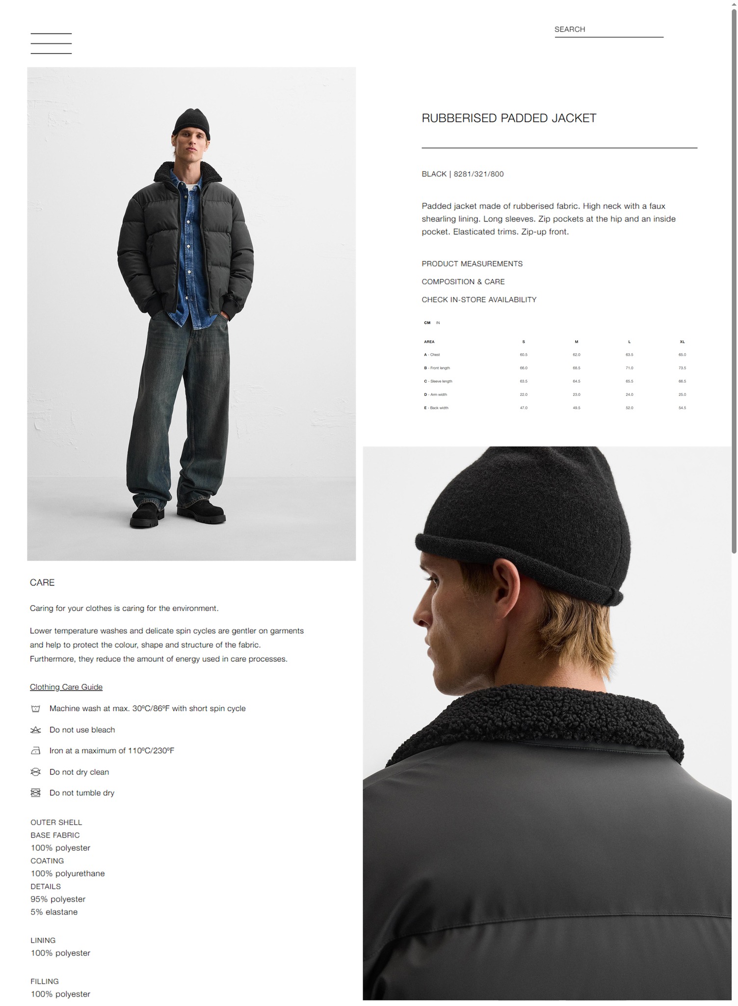 - ZARA MAN - RUBBERISED PADDED JACKET