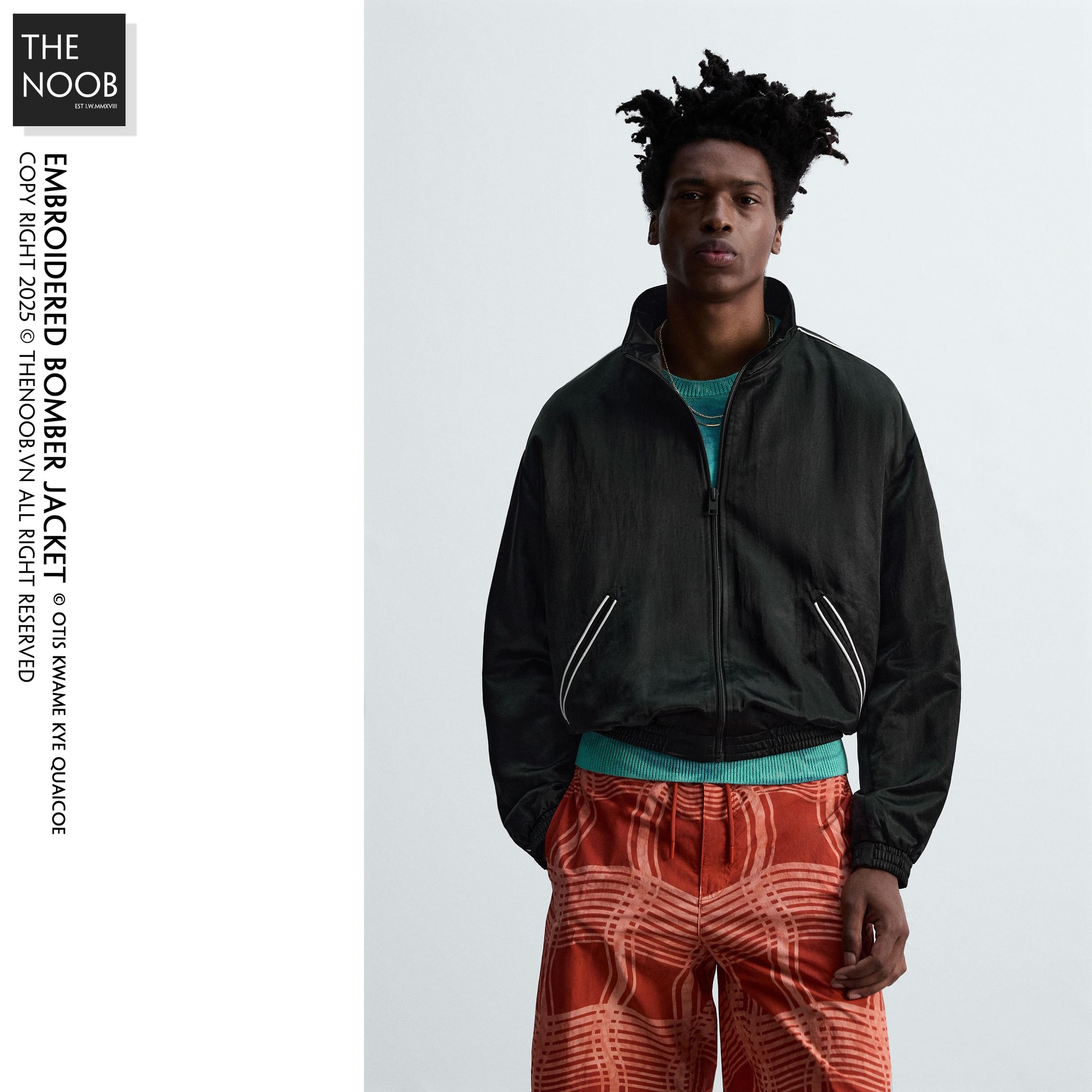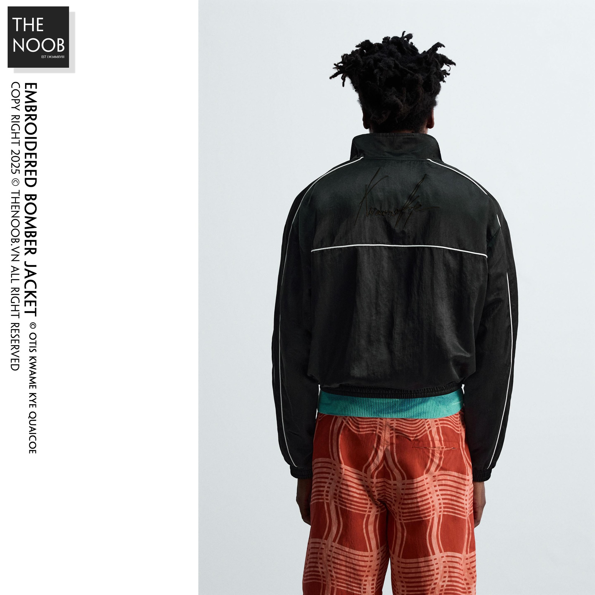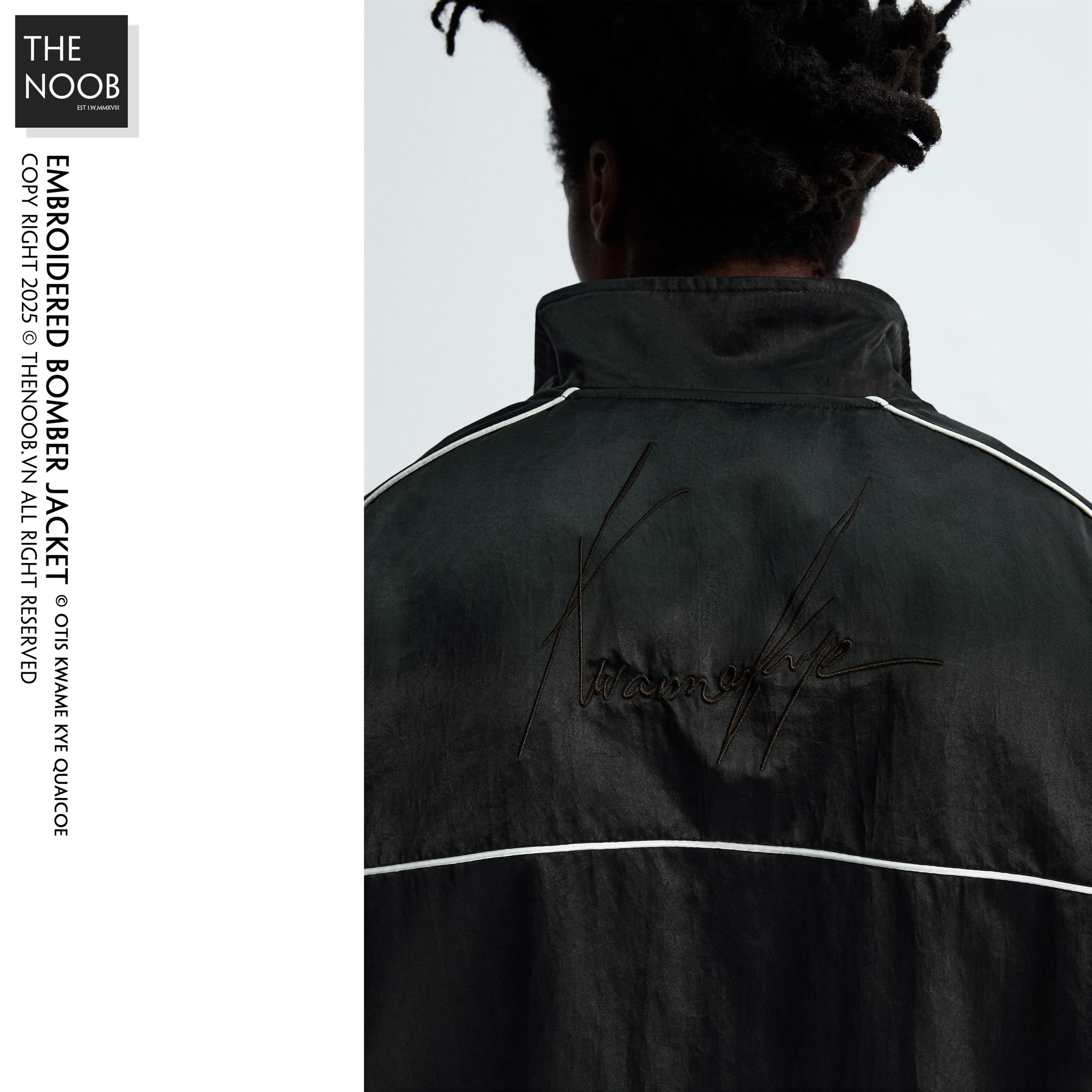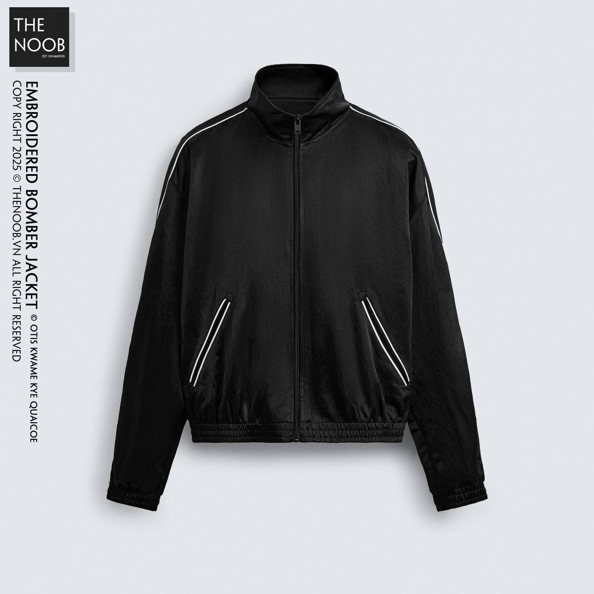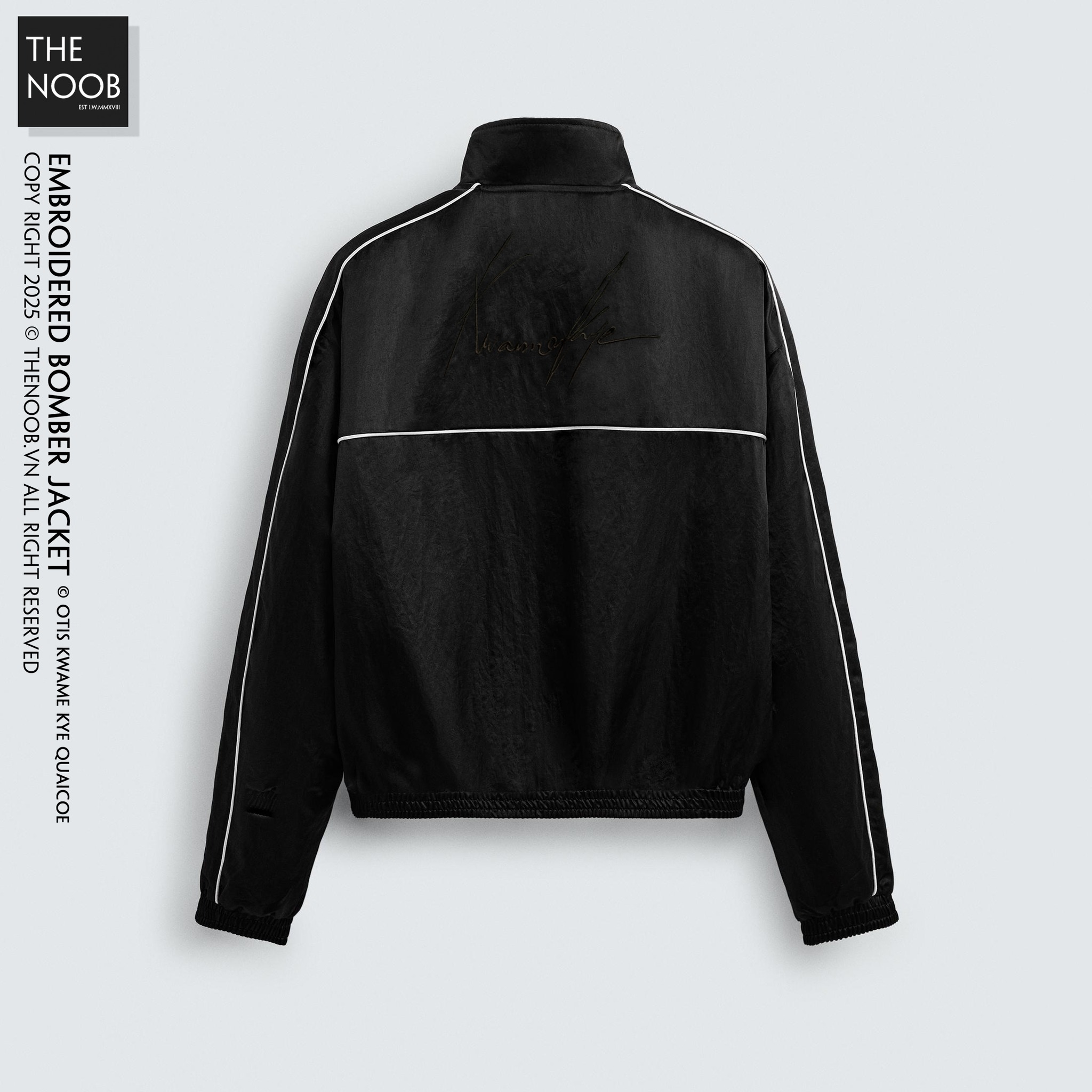 - Áo form to nhiều về bề ngang, độ phồng form áo rất tốt, thiết kế track line sáng màu chạy quanh áo làm điểm nhấn, khóa áo bằng kim loại phủ đen mờ. Lưng áo thêu họa tiết