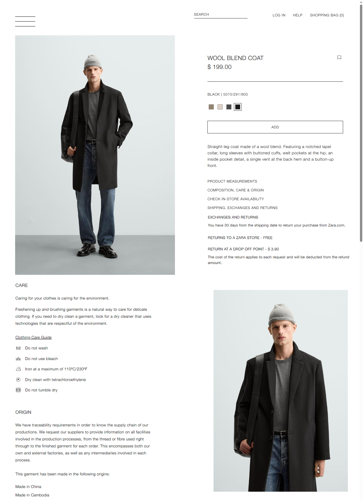 - ZARA MAN - WOOL BLEND COAT