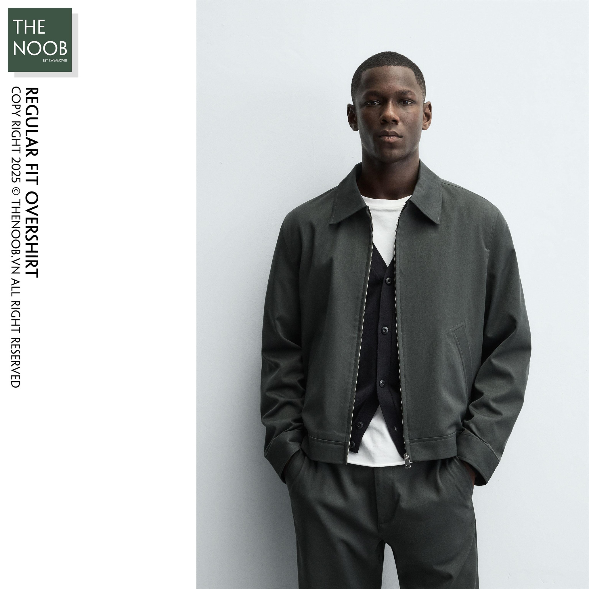 - Áo mang phong cách Overshirt, cổ bẻ và tay áo cài khuy, dáng áo regular-fit relaxed thoải mái, thân áo ngắn tay dài,