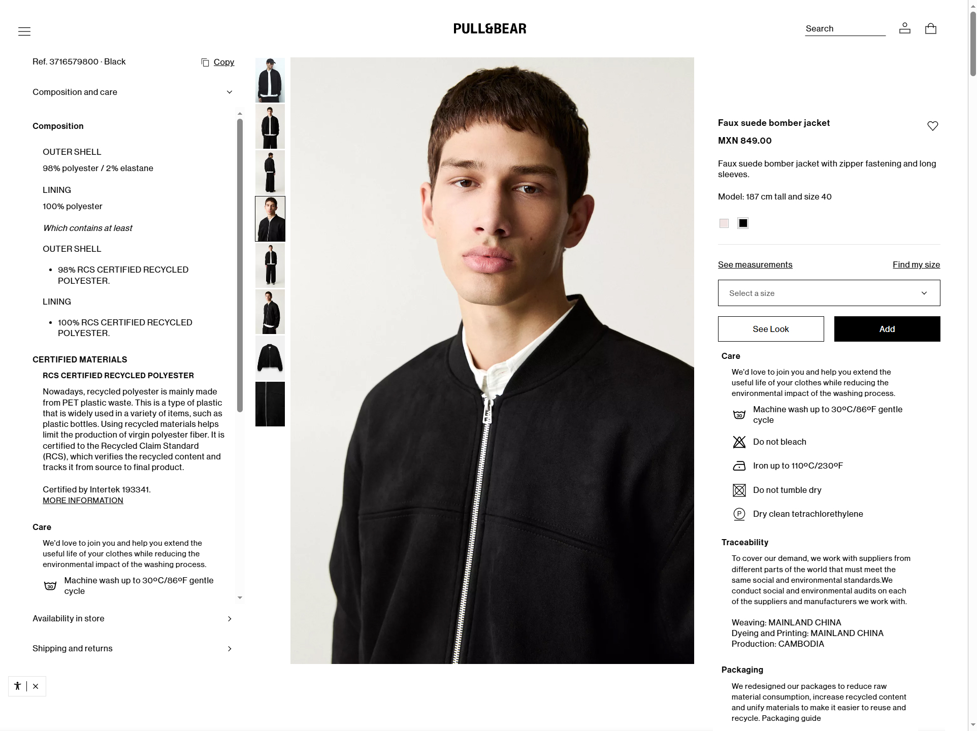 - PULL & BEAR - FAUX SUEDE LEATHER BOMBER JACKET
