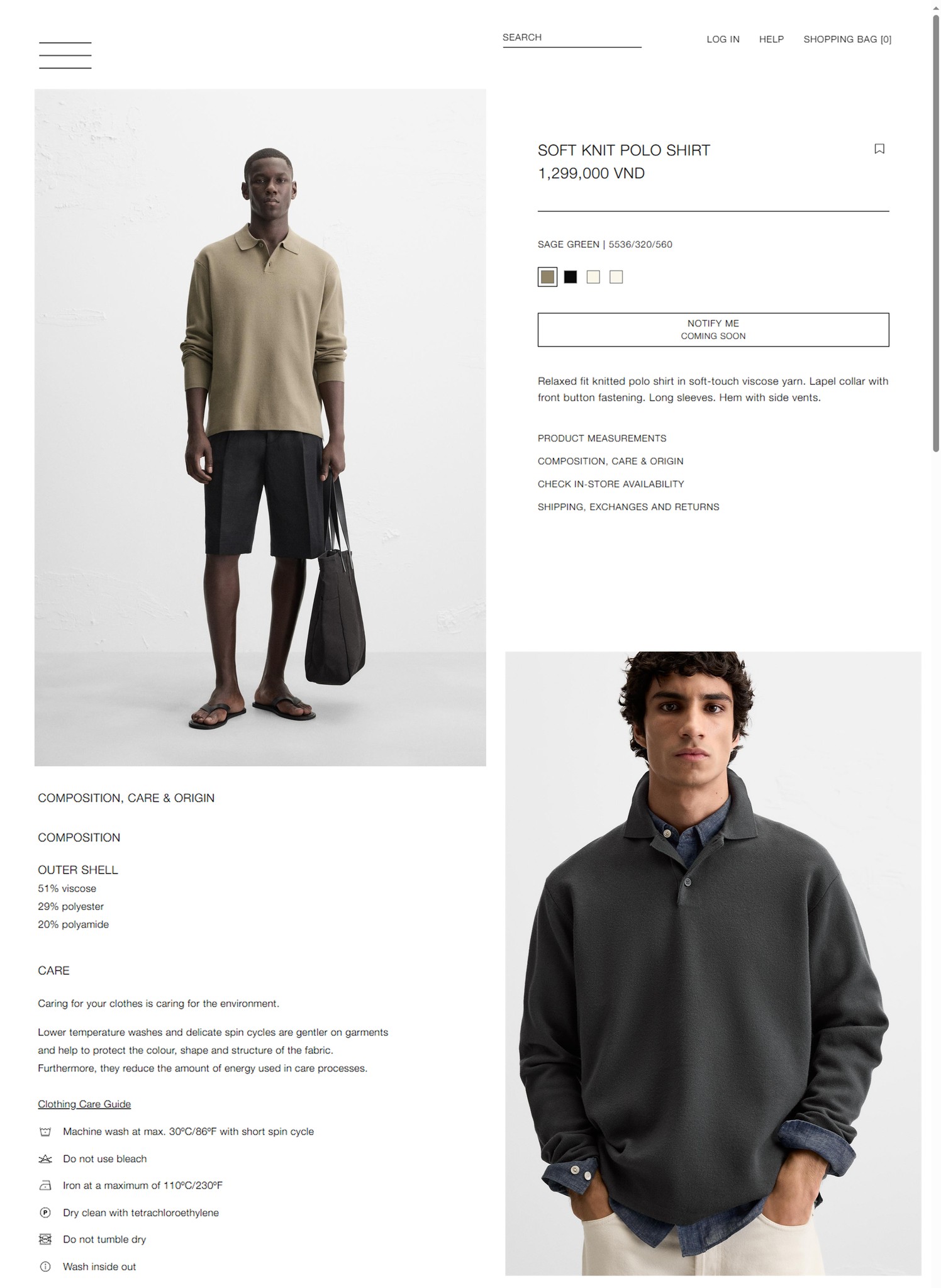 - Áo polo dệt kim pha sợi viscose mềm mại, dáng relaxed fit. Theo giới thiệu của nhà sản xuất chất liệu len được dệt từ sợi tổng hợp bao gồm thành phần 51% viscose - 29% polyester - 20% polyamide