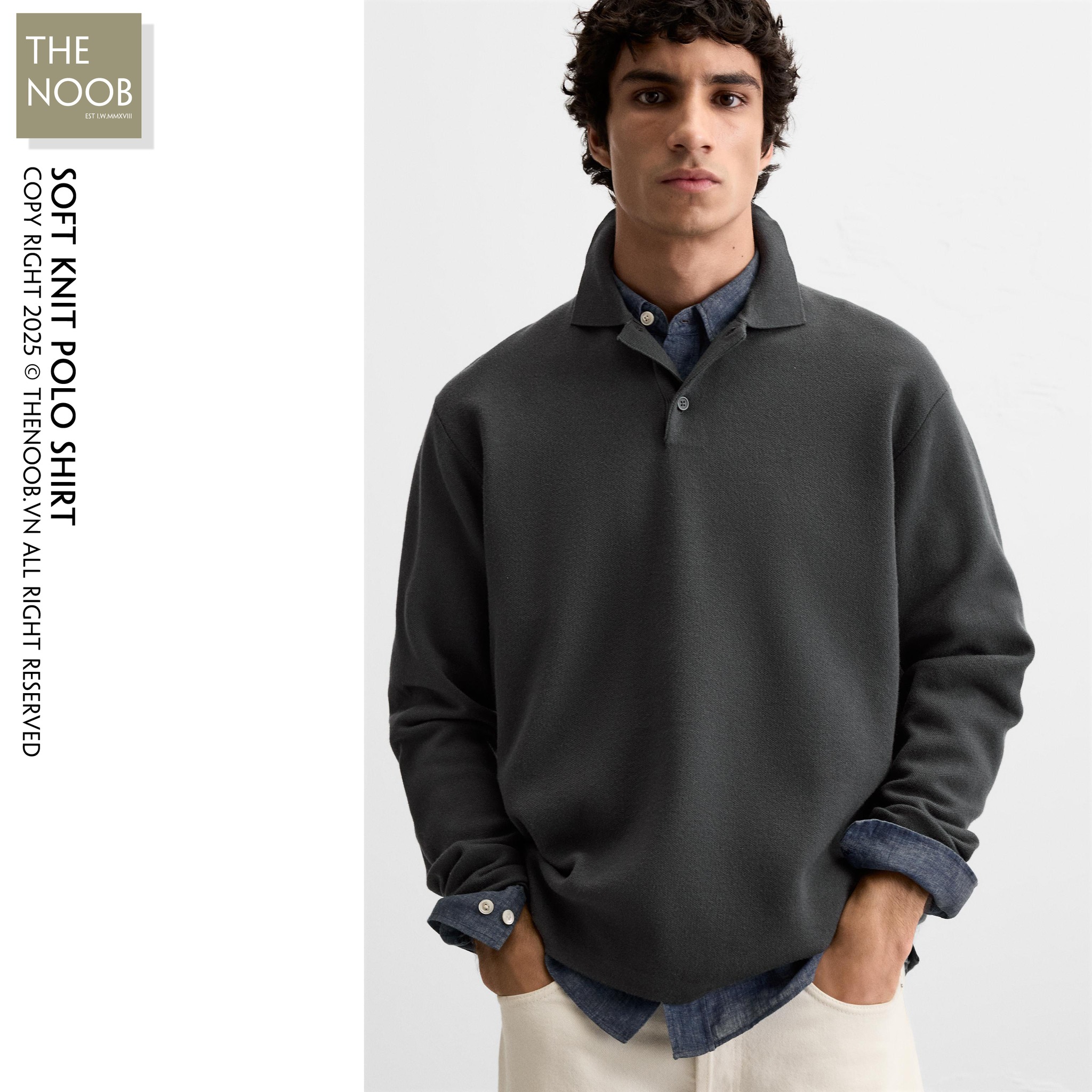 - Áo được thiết kế form relaxed với thân xuông đứng và ống tay xuông, không có bo dệt như các dòng truyền thống,