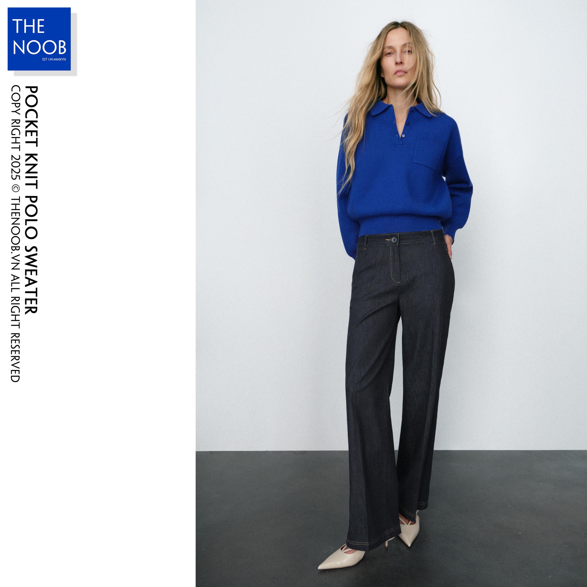 - Form áo rộng rãi về bề ngang, form đứng dáng, không chảy, tay áo bay dáng cổ V cài khuy, dáng ngắn thân cropped rất dễ mặc và phối đồ