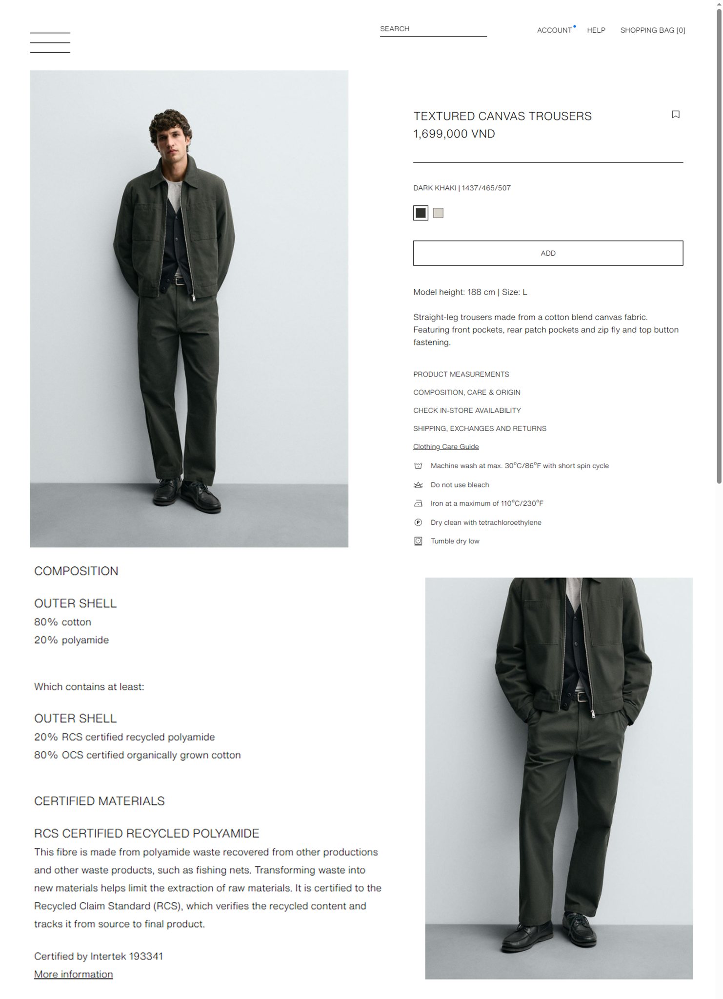 - Quần chất liệu khaki thô dầy dạn, 80% cotton - 20% vải polyamide