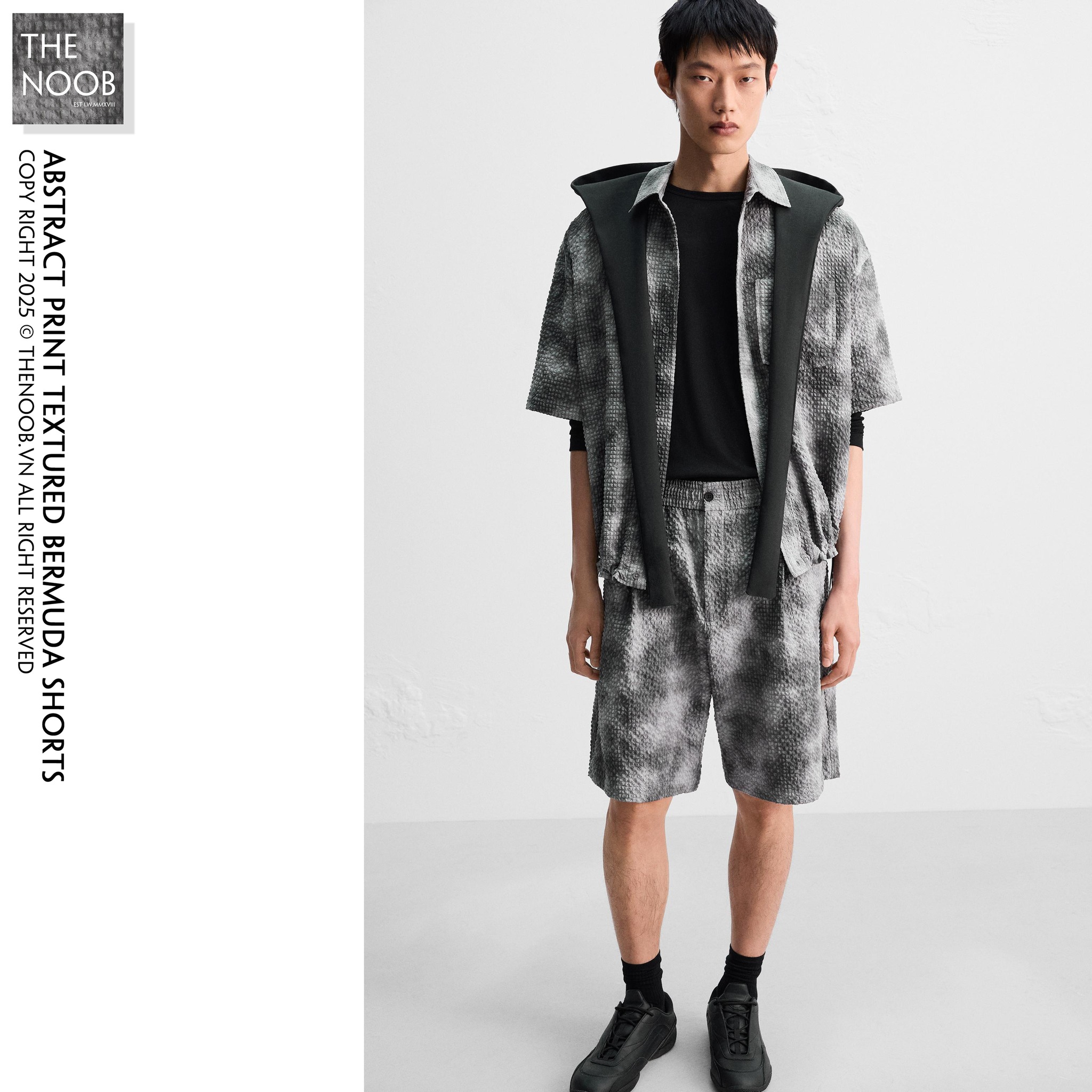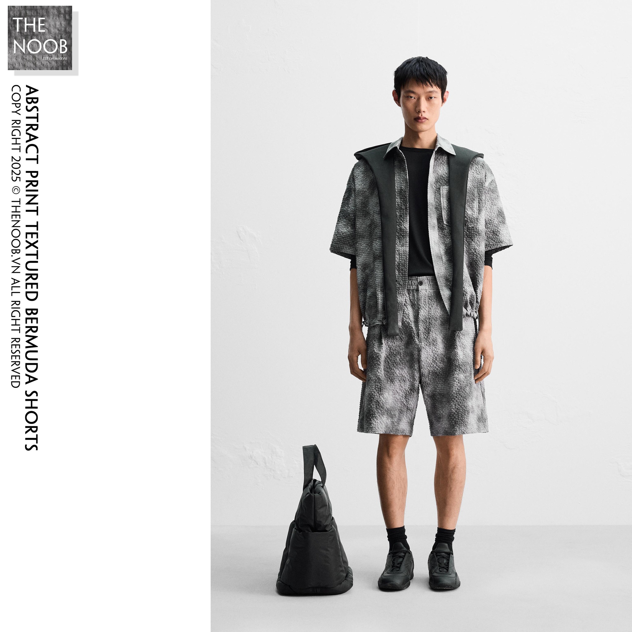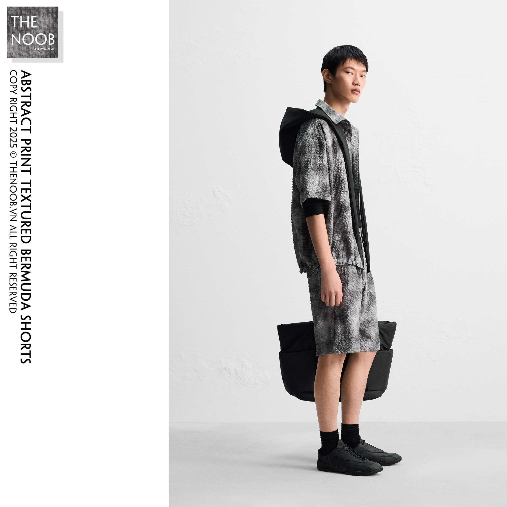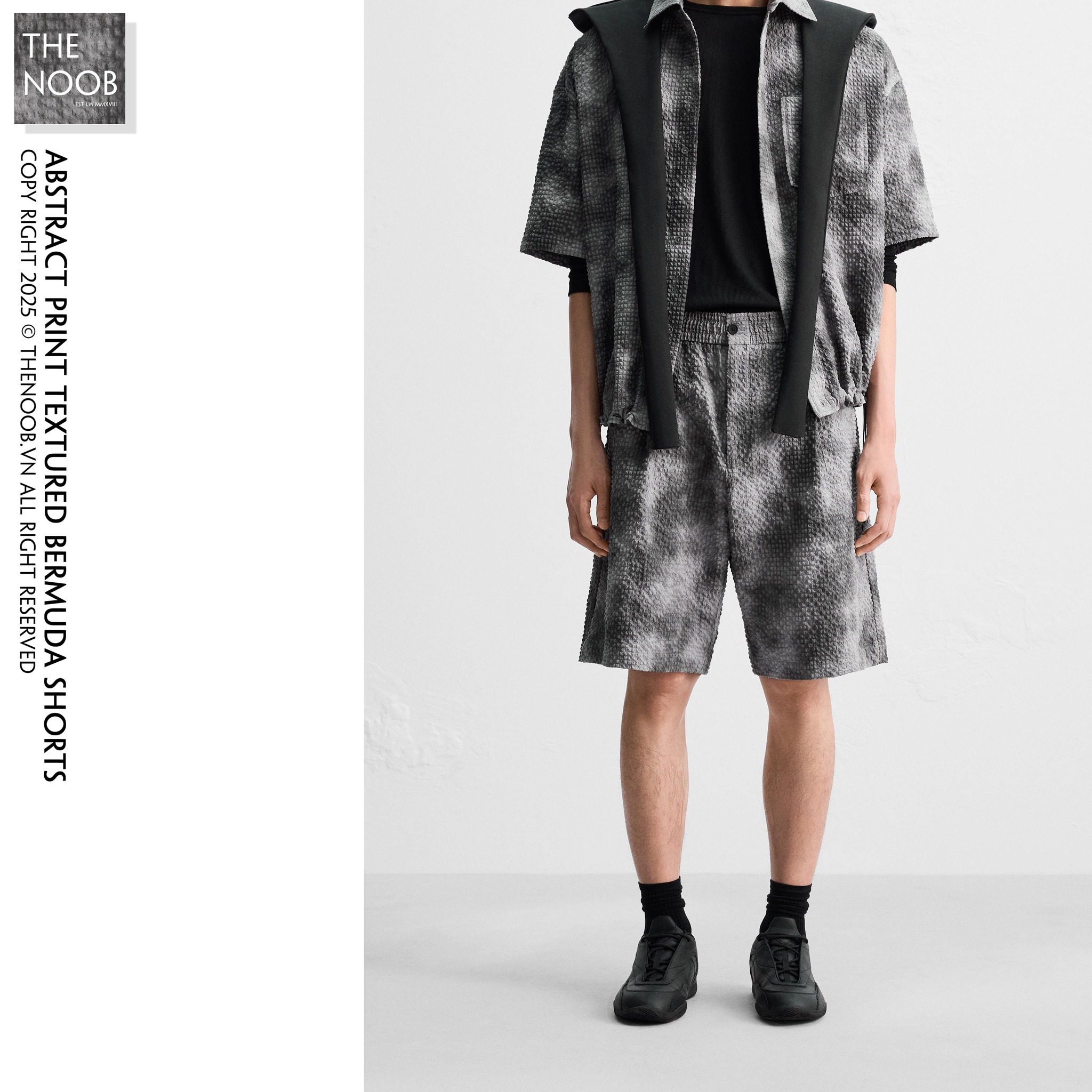 - ZARA MAN - ABSTRACT PRINT TEXTURED BERMUDA SEERSUCKER SHORTS