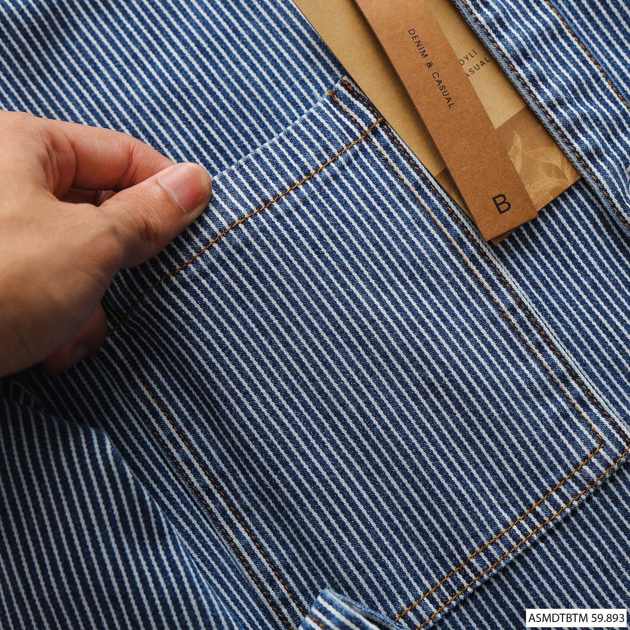 - Áo chất liệu vải denim không co dãn, tỷ lệ dệt 100% từ sợi cotton, họa tiết trên áo là vân sọc dọc nhỏ