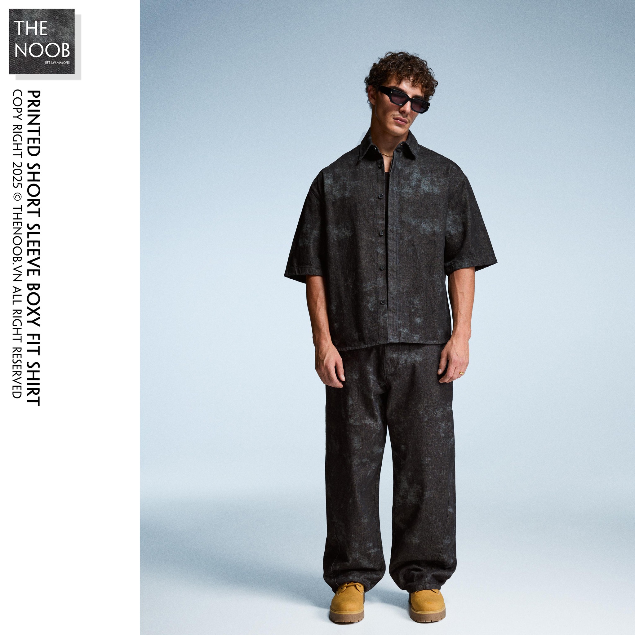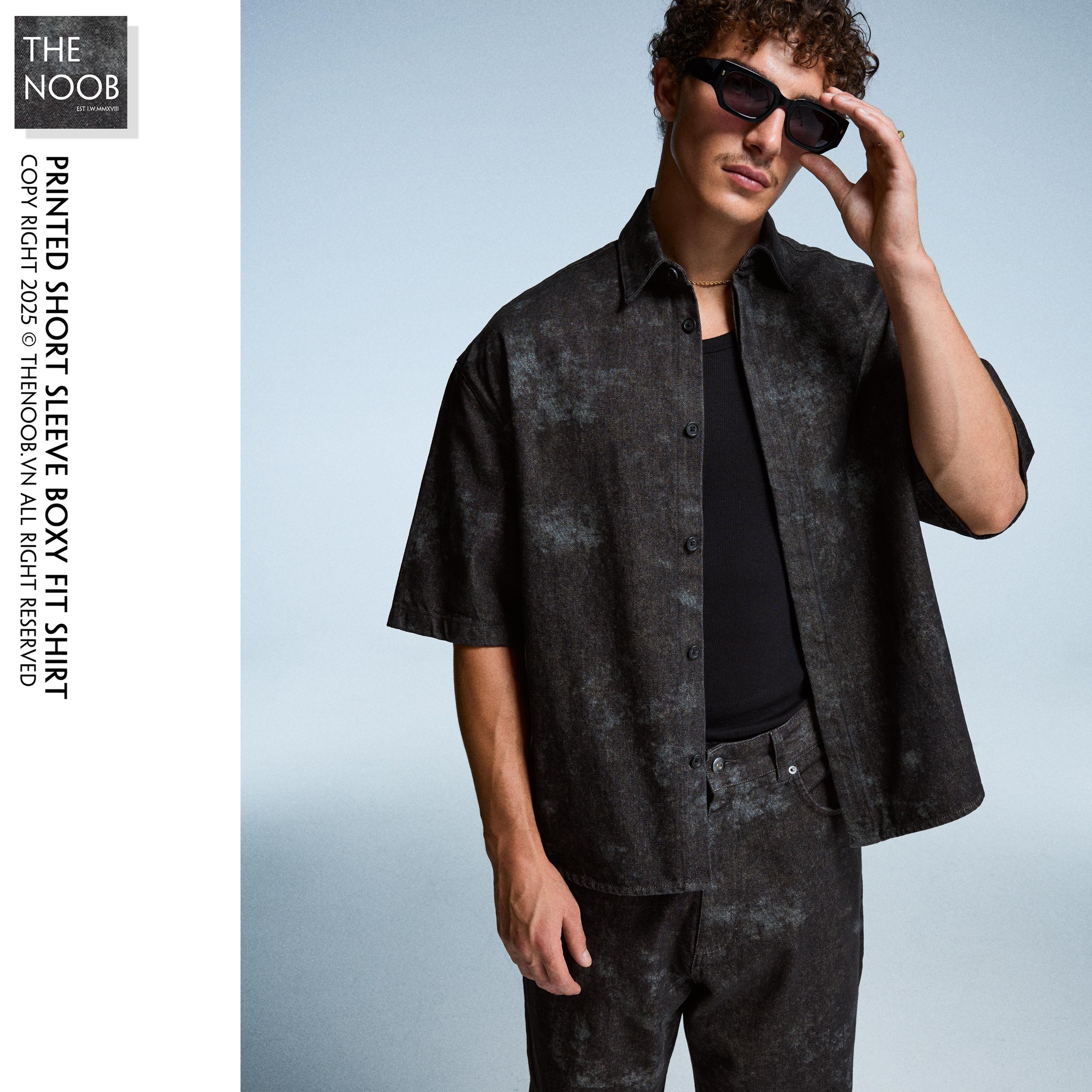 - Áo chất liệu denim không co giãn, dệt 100% từ sợi cotton, RSC . Họa tiết loang mốc bụi bặm cá tính