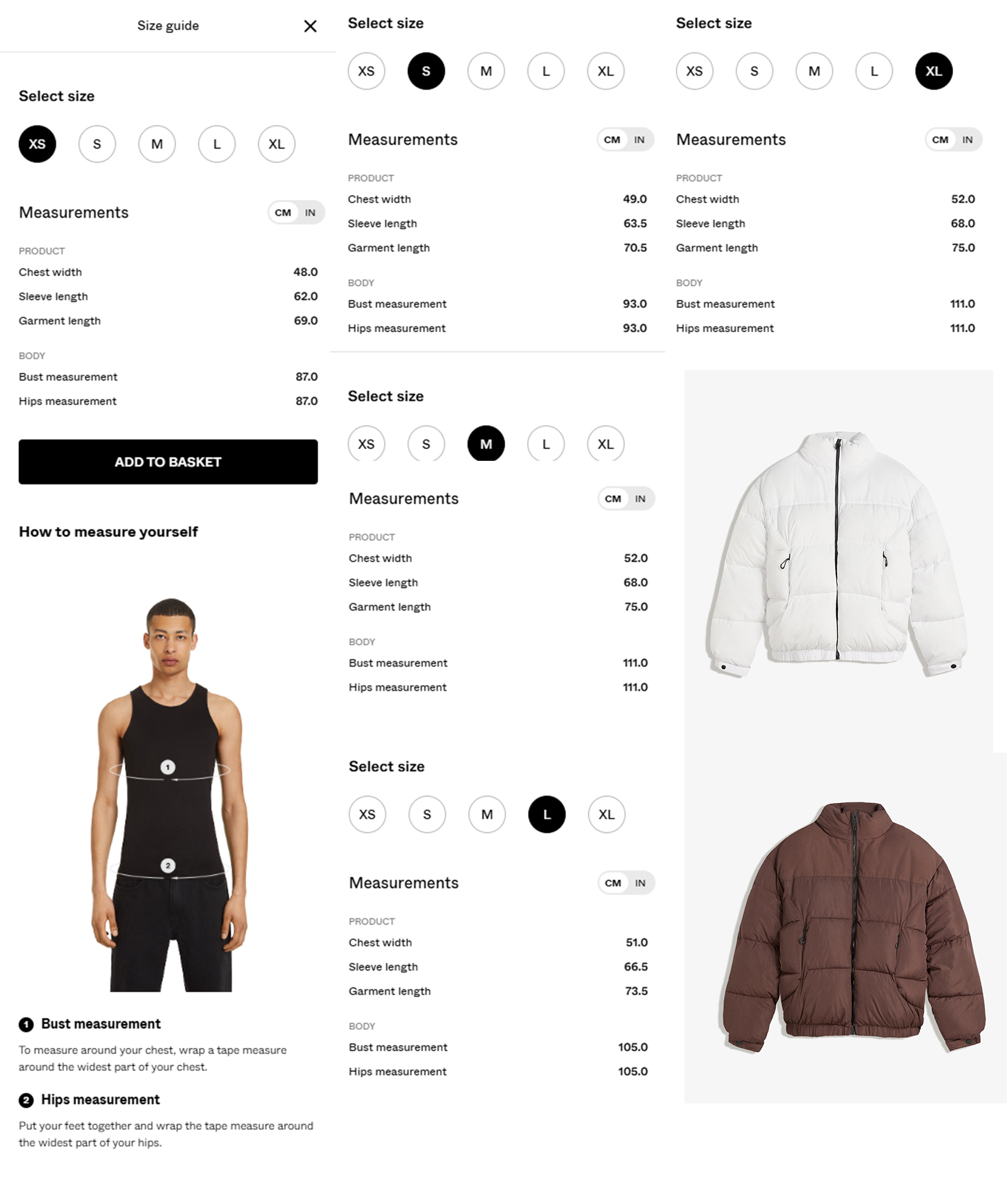 • Body dưới 65kgs mặc size XS tùy cao tùy phong cách mặc và phối đồ