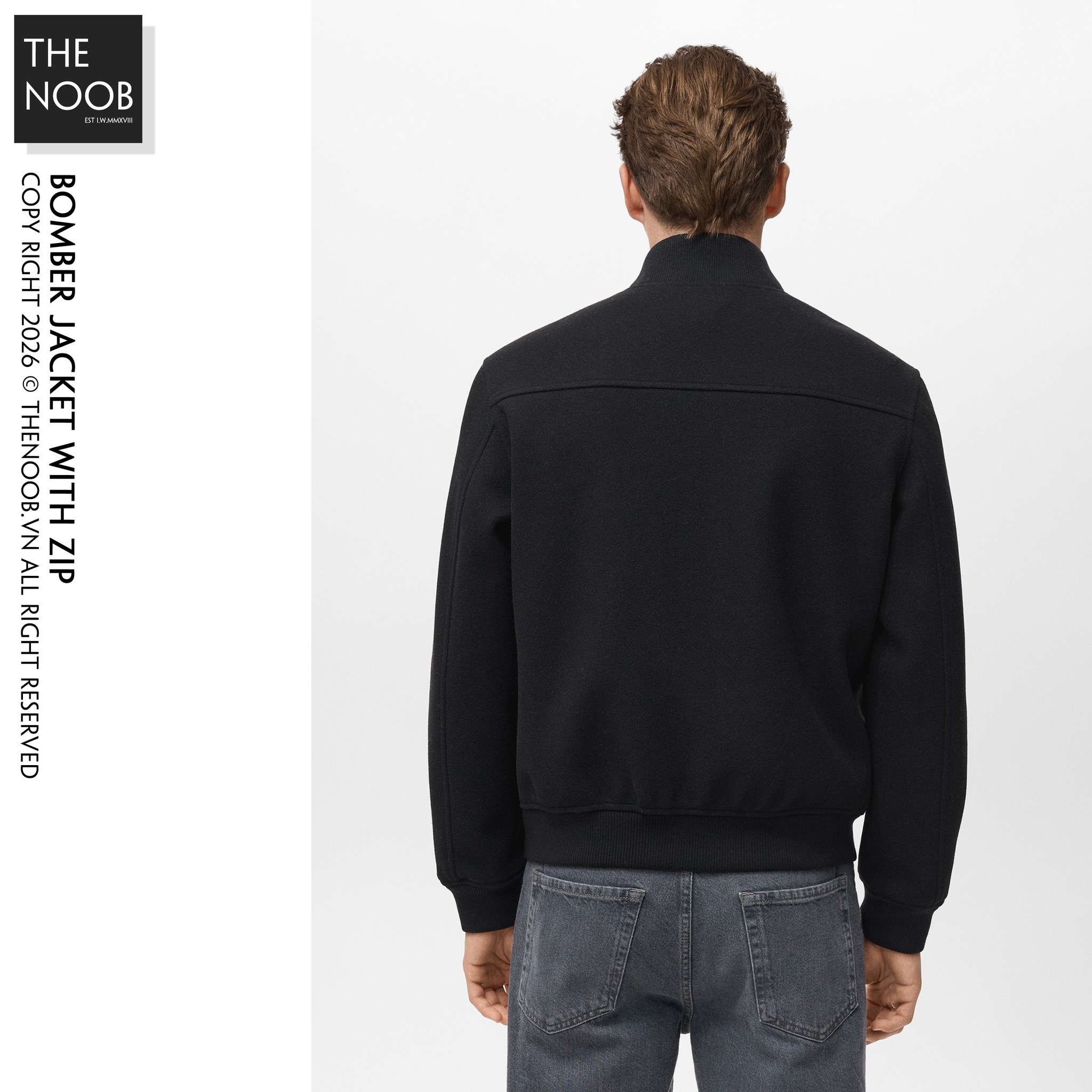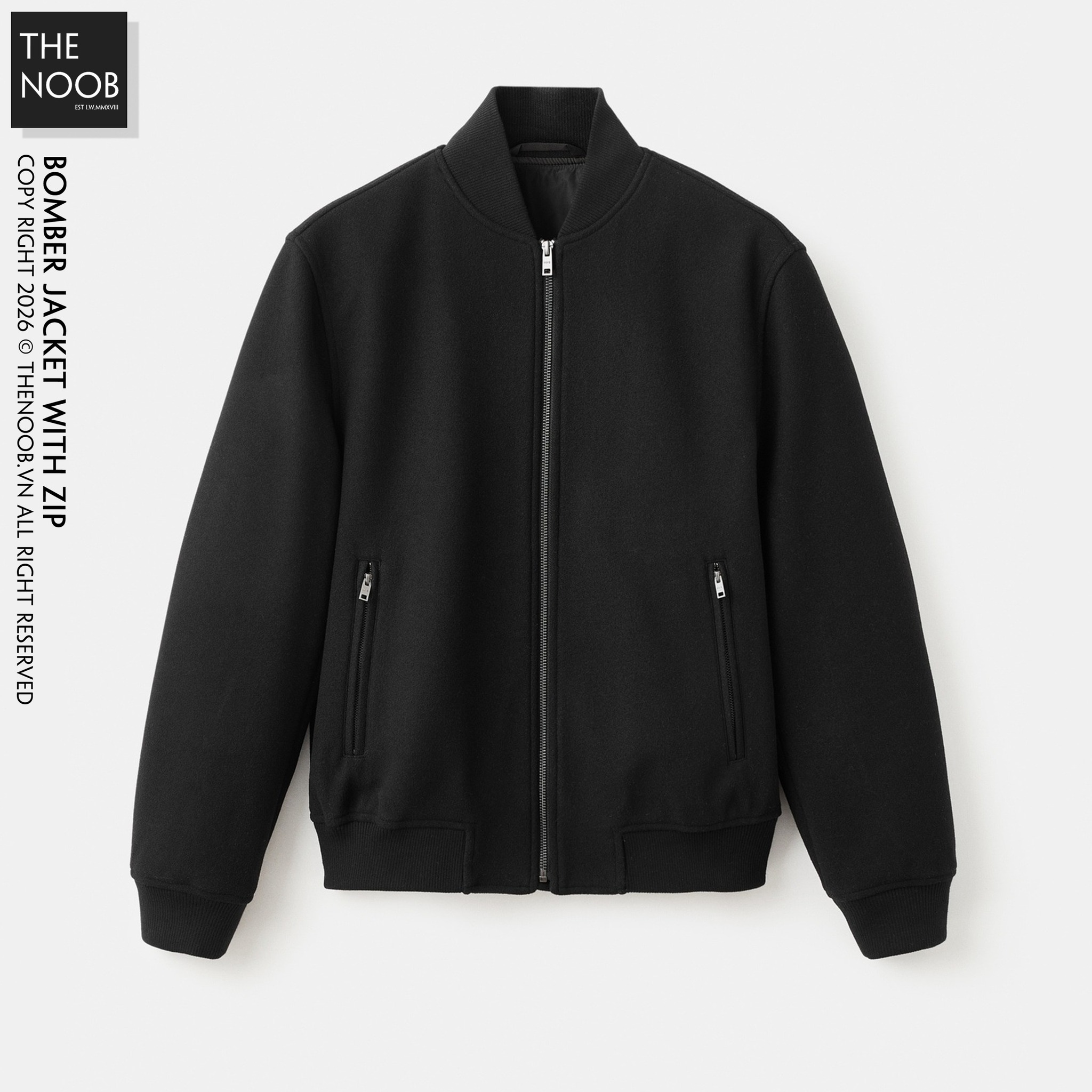 - Áo form relaxed-fit cơ bản dễ mặc màu đen tuyền, chạy khóa hợp kim bản to, mặt trong có túi phụ.