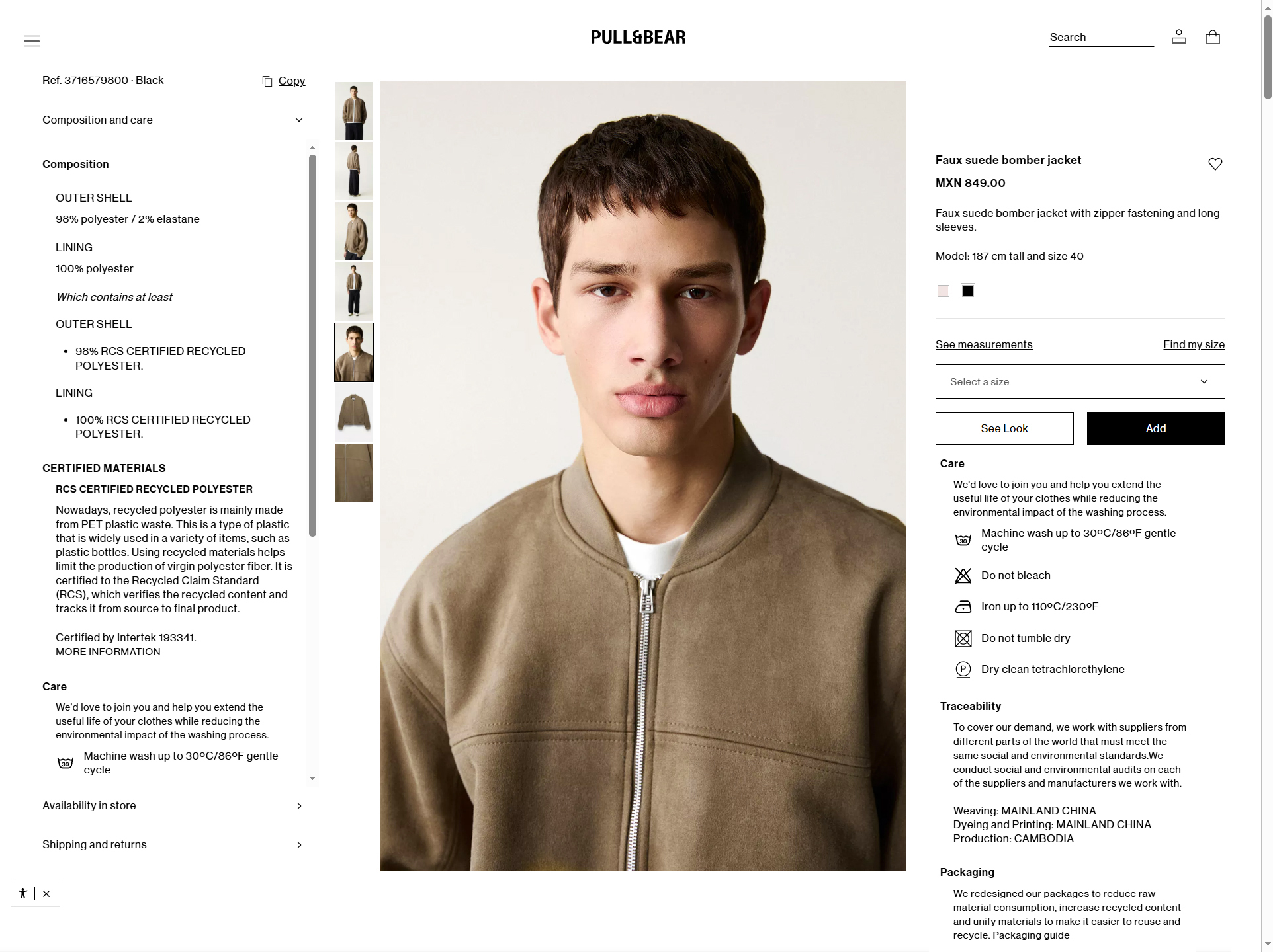 - PULL & BEAR - FAUX SUEDE LEATHER BOMBER JACKET