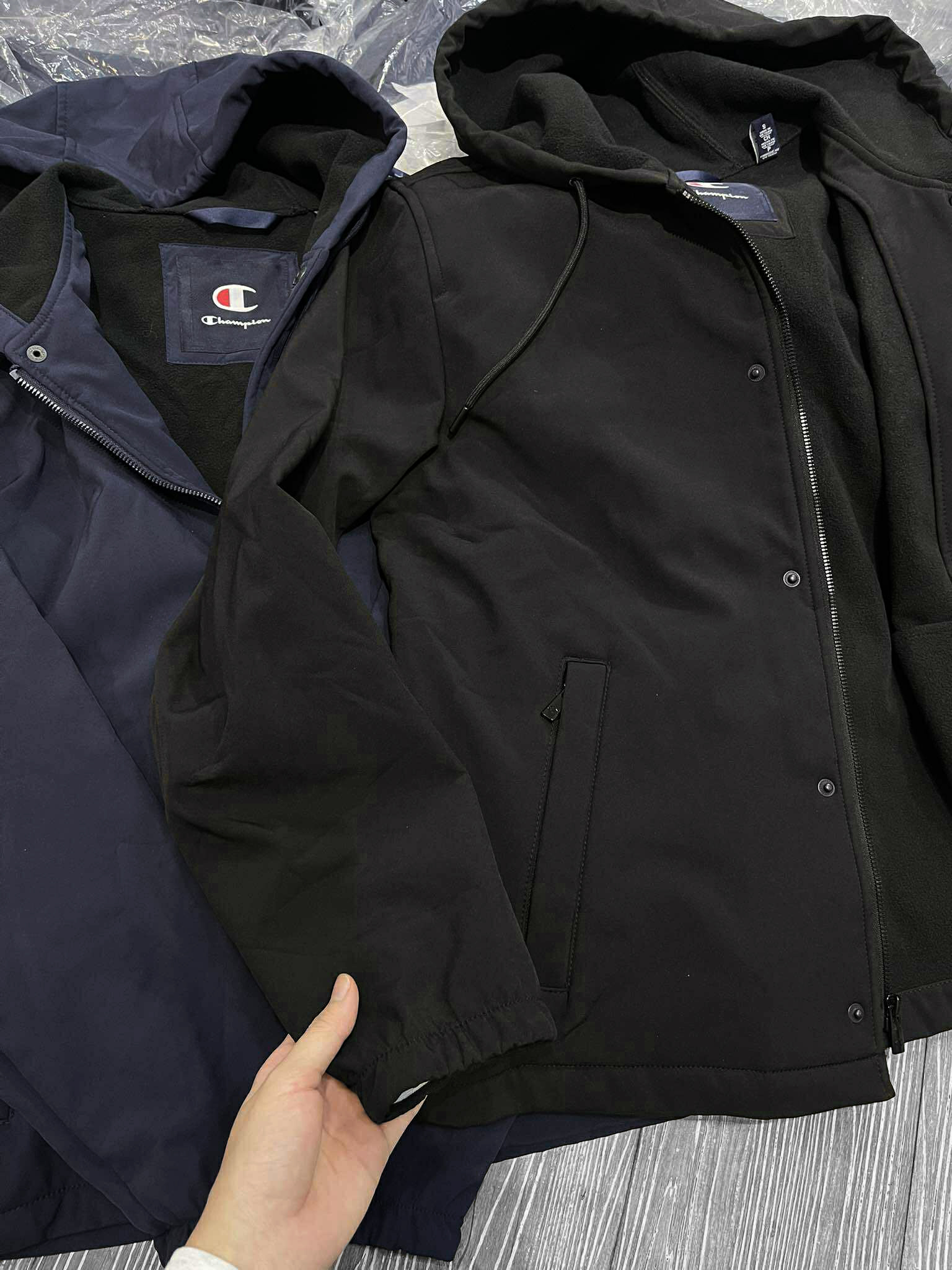 - Áo 2 lớp, chất liệu bề mặt vải dù đứng vải có tính năng kháng nước rất tốt, mặt trong lót nỷ lông cùn giữ nhiệt, 95% Polyester, 5% Spandex