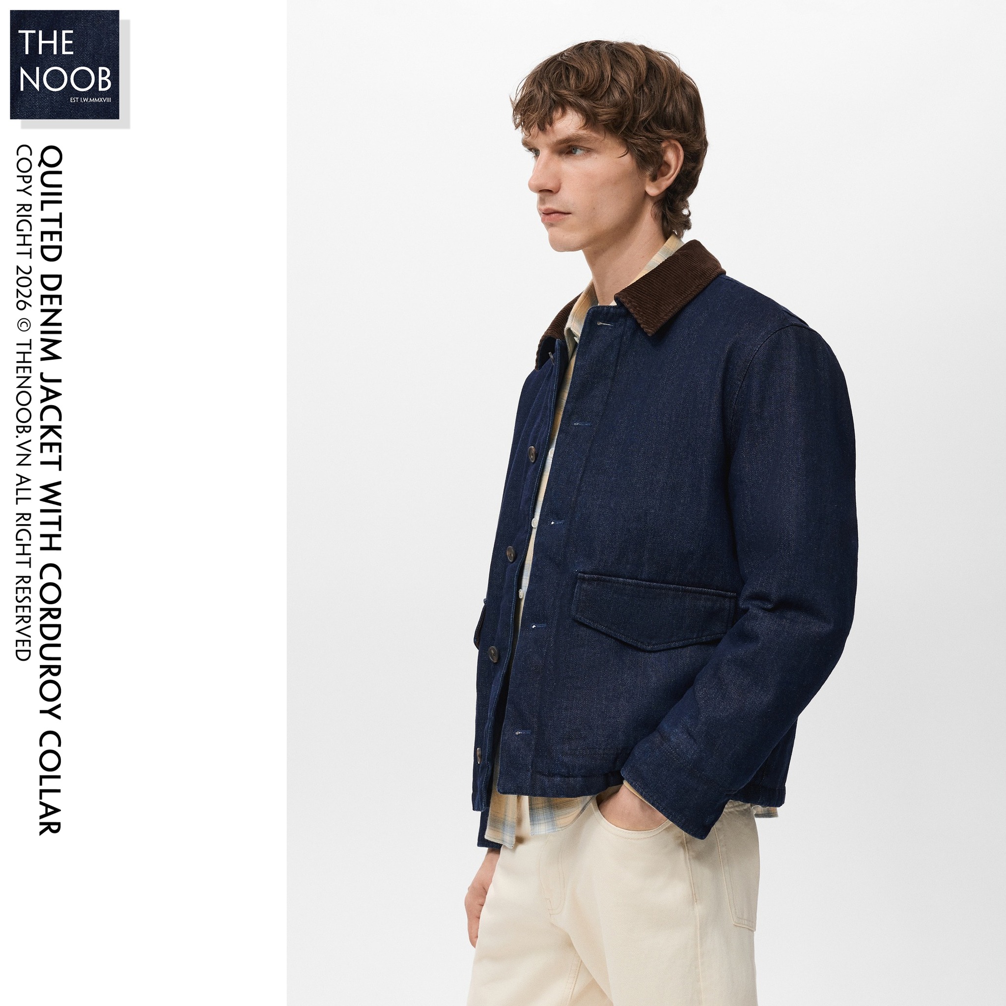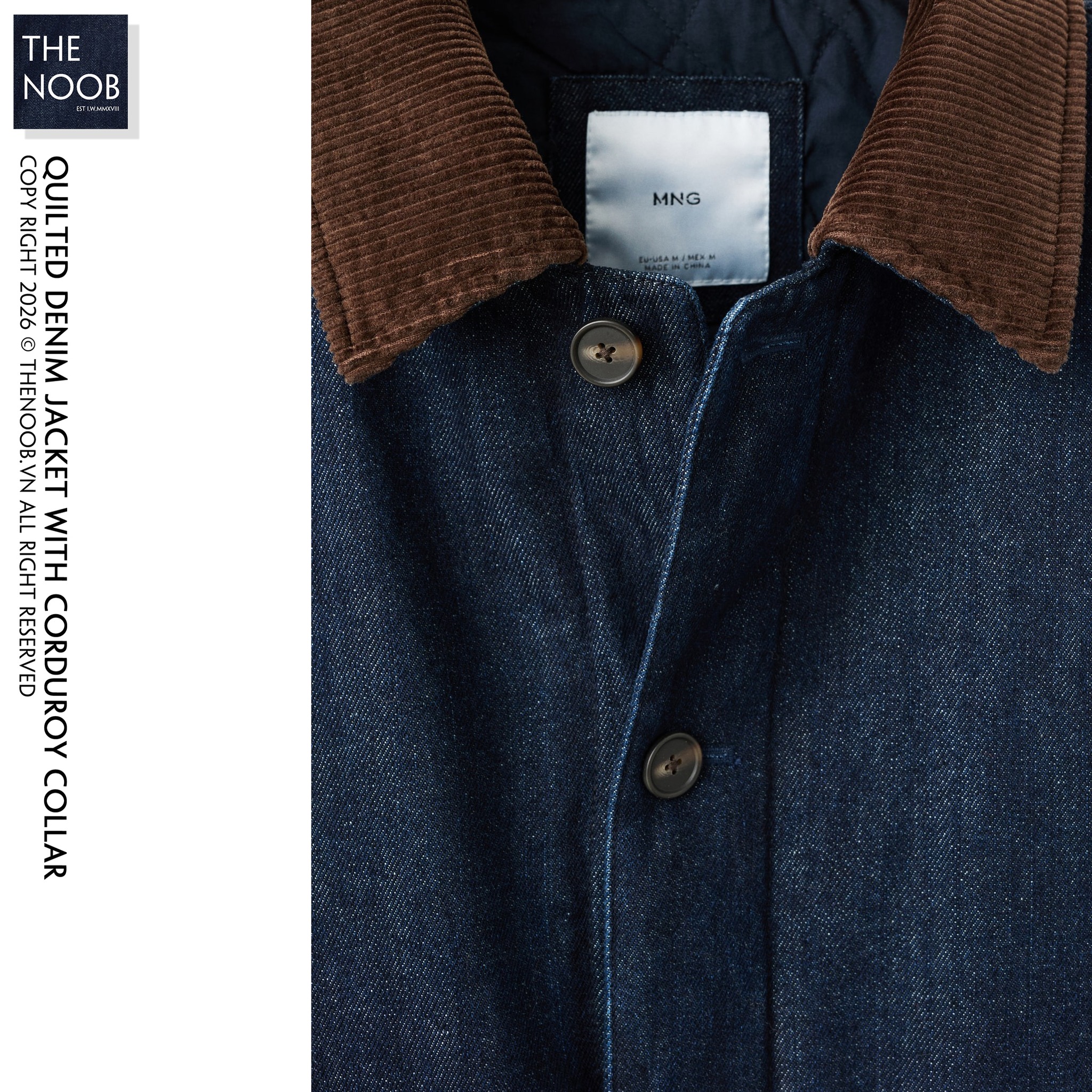 - MANGO - QUILTED DENIM JACKET WITH CORDUROY COLLAR