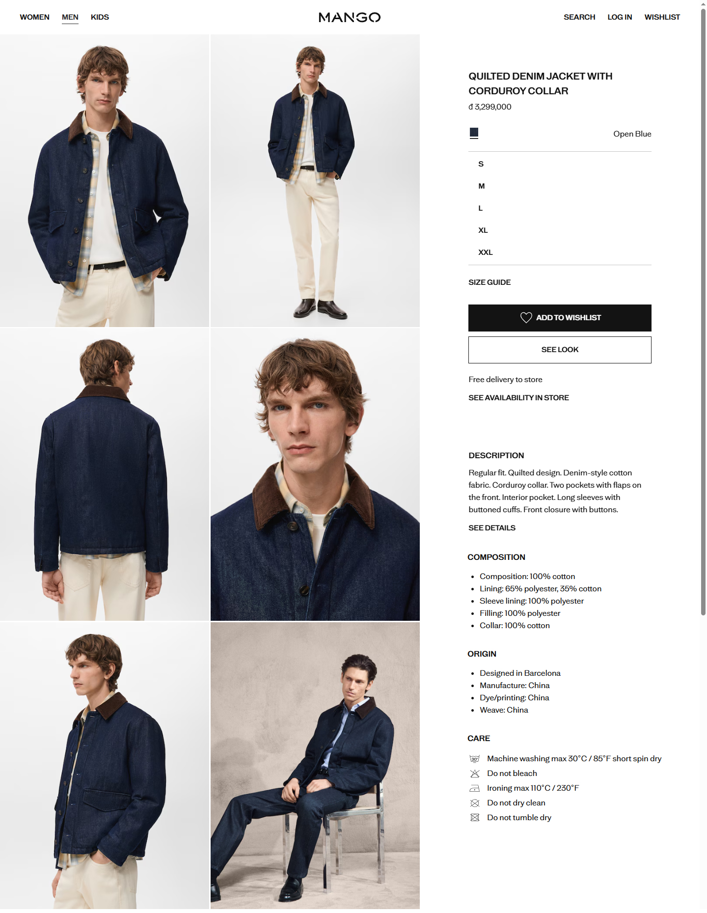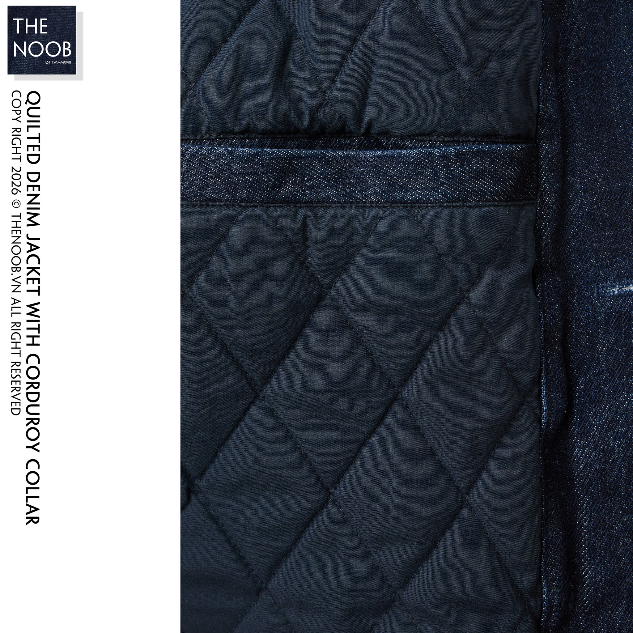 - Áo 3 lớp trần bông trám mặt trong, mặt ngoài chất liệu vải denim mix cổ nhung tăm 100% cotton, mặt trong lót vải tổng hợp - dạng đũi có tỷ lệ thành phần vải 65% polyester, 35% cotton . Giữa áo trần bông 100% polyester . Lớp lót cánh tay bằng vải dù 100% polyester