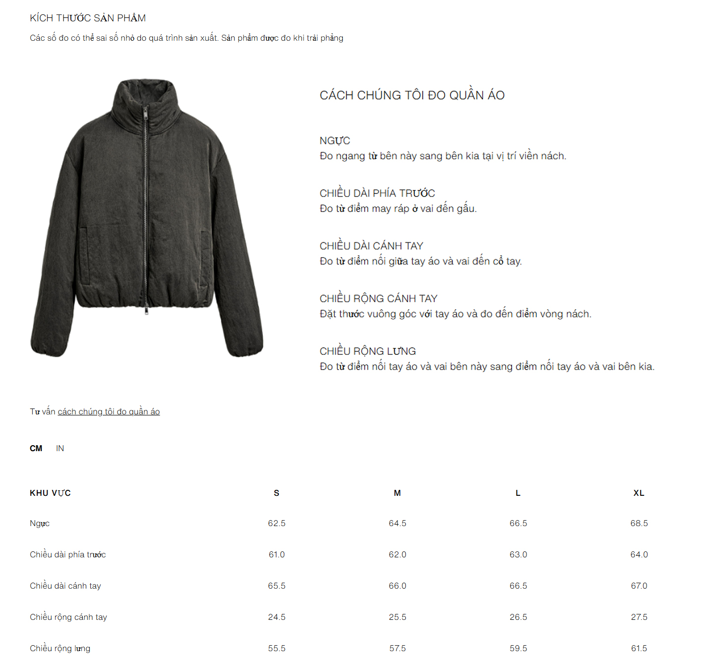- Áo form cropped-fit ngắn dáng, to ngang, cổ cao, thân và cổ tay có bo chun. Khóa kéo hợp kim chạy 2 chiều, có túi phụ. Hiệu ứng bề mặt vải dạng washed cho hơi hướng vintage