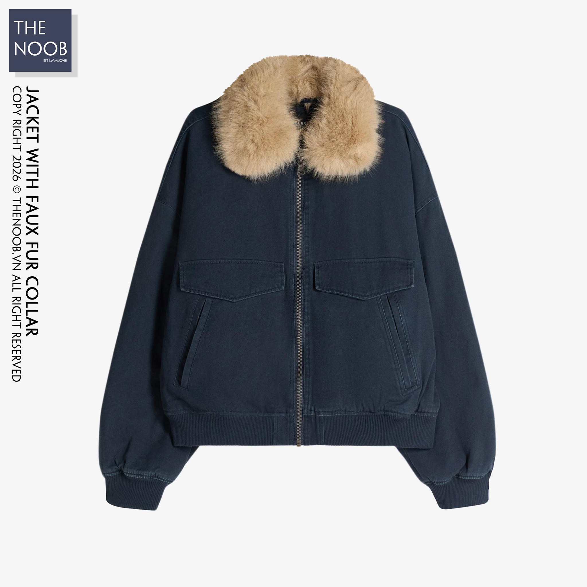 - BERSHKA - JACKET WITH FAUX FUR COLLAR