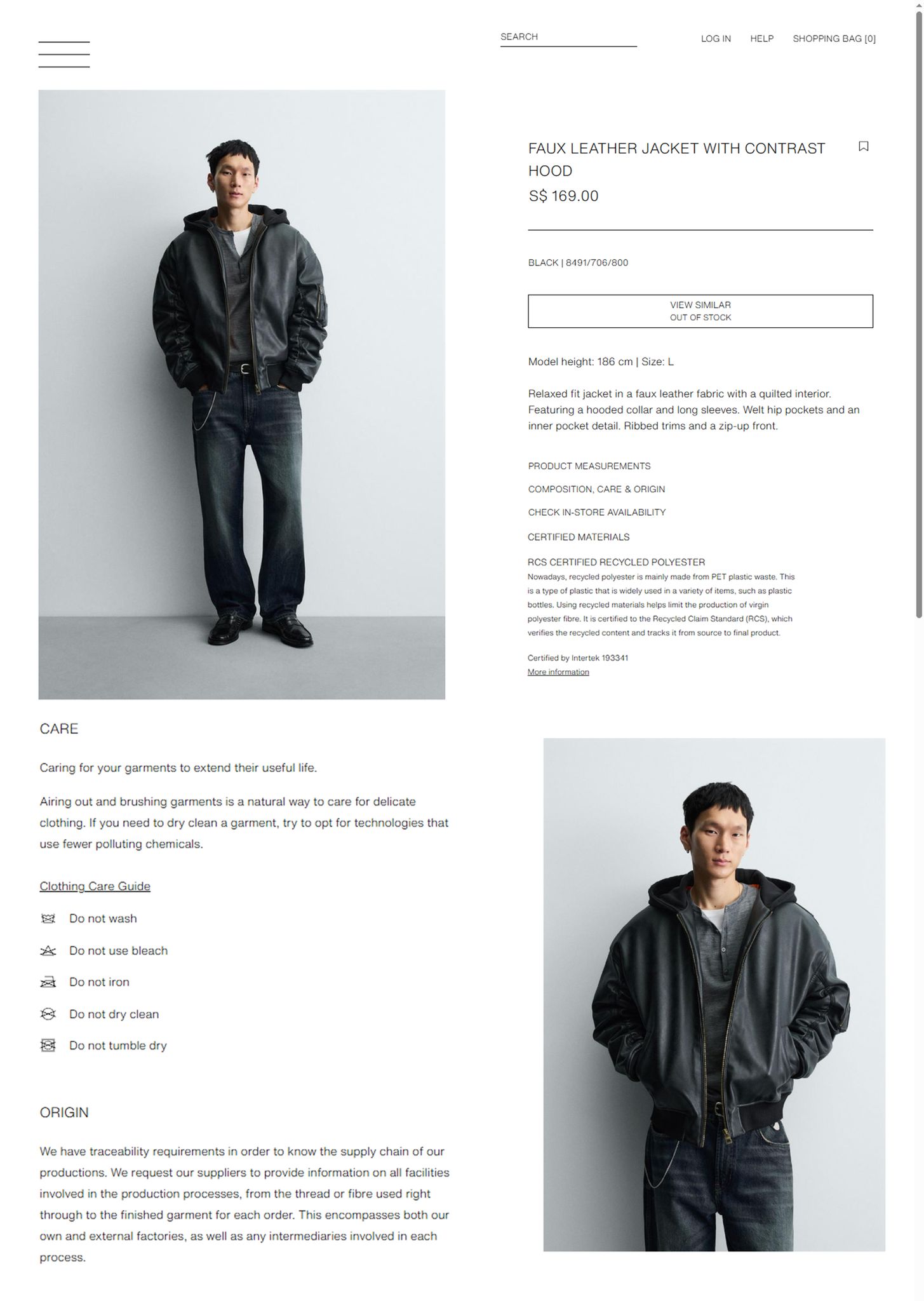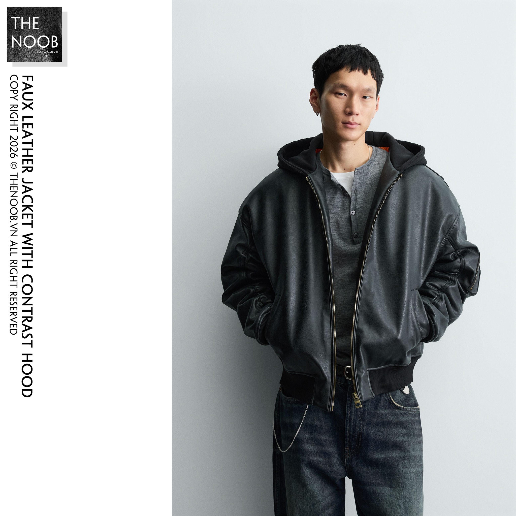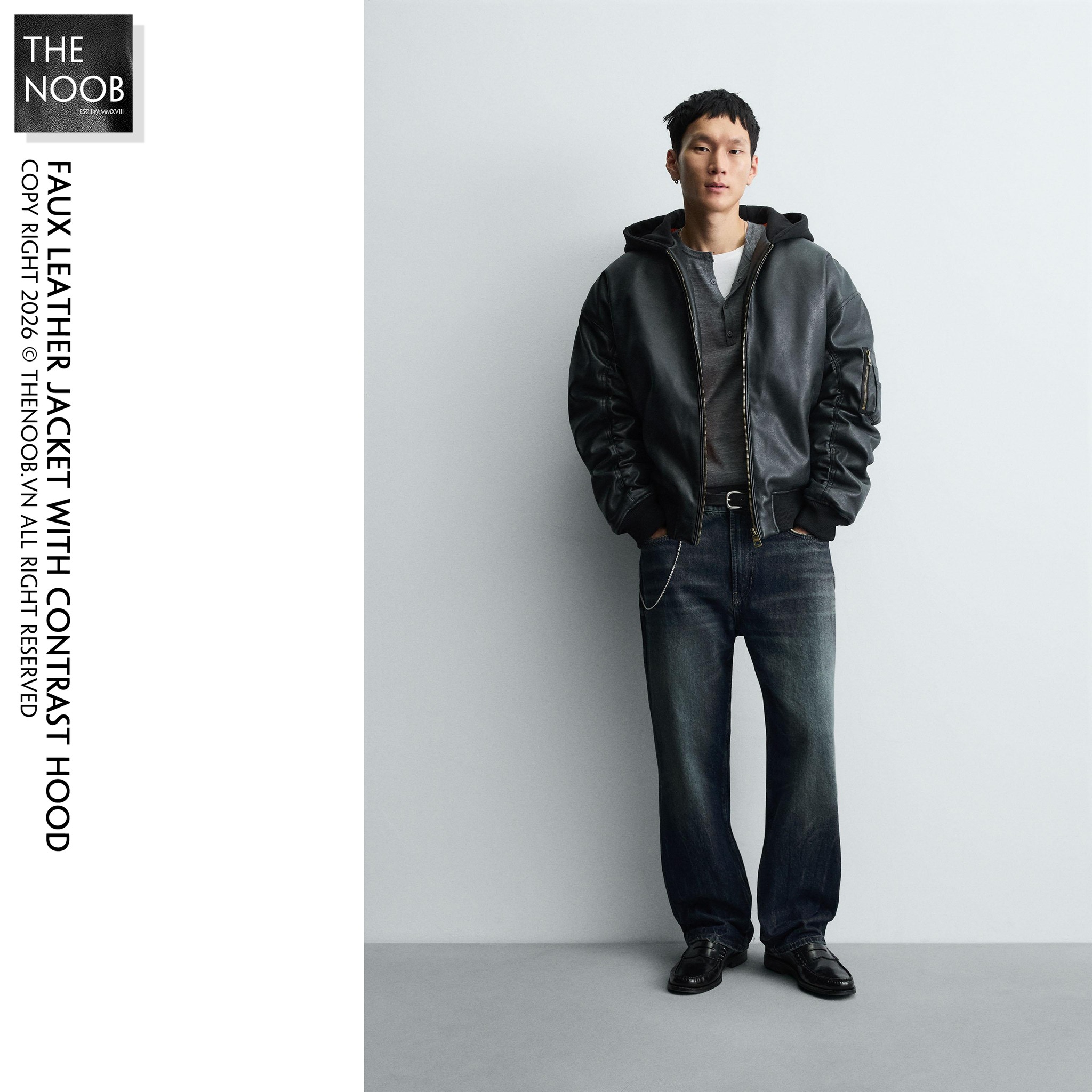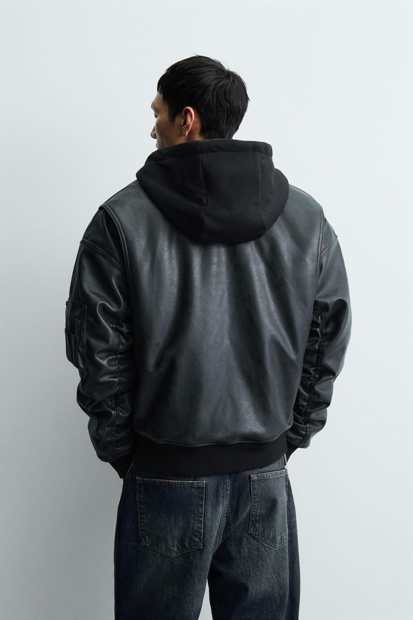 - ZARA MAN - FAUX LEATHER JACKET WITH CONTRAST HOOD