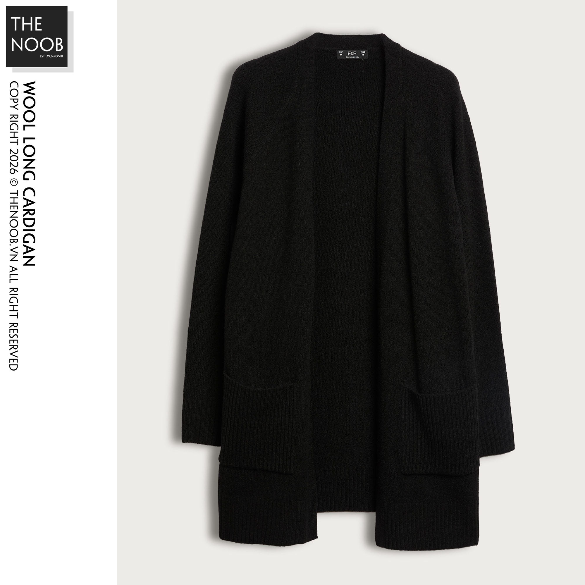 - F&F - PATCH POCKET OPEN FRONT CARDIGAN WITH WOOL
