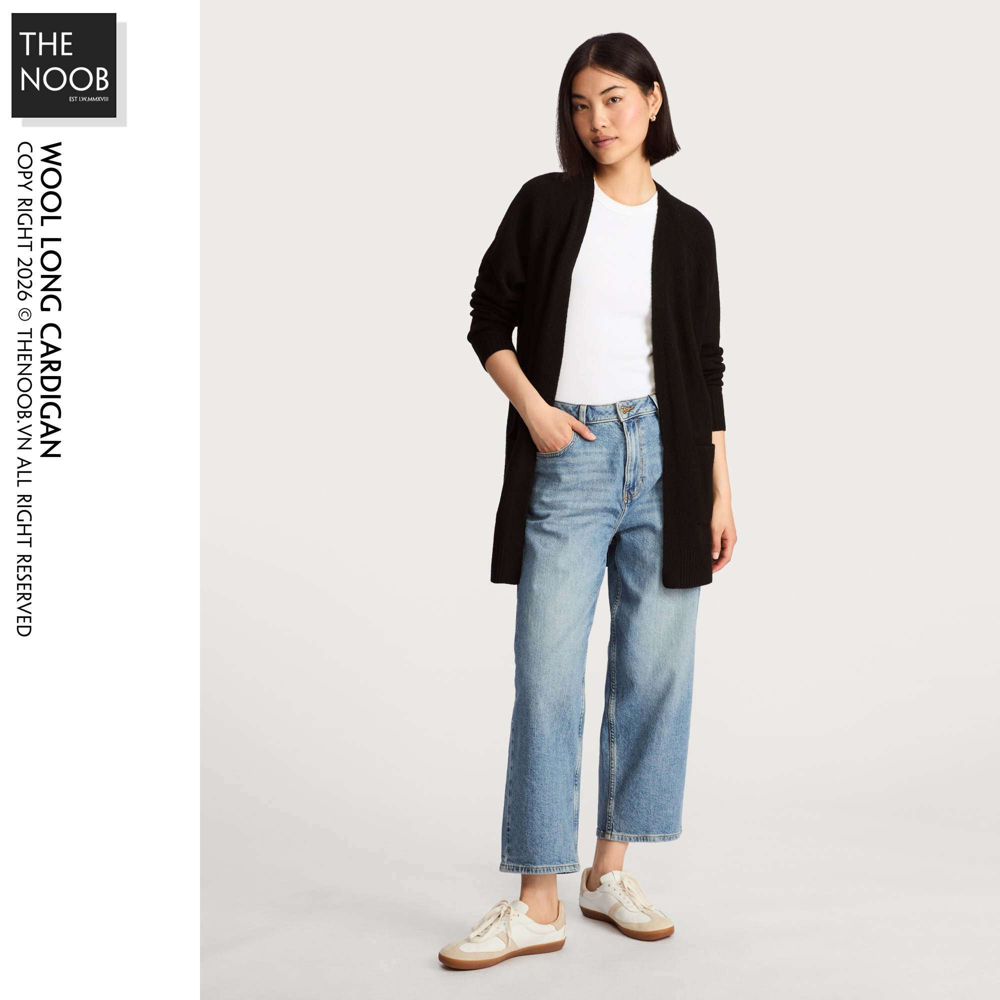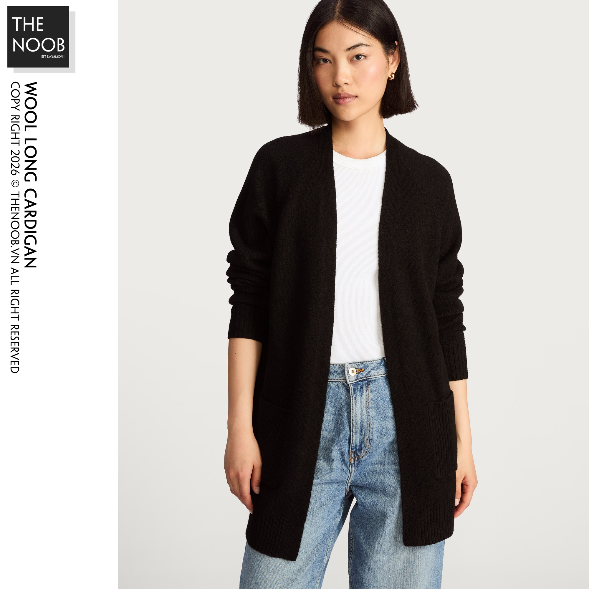 - Áo dáng xuông dạng open front, không khuy cài, phong cách đơn giản nam nữ mặc đều được, thân dưới và ống tay dệt bo