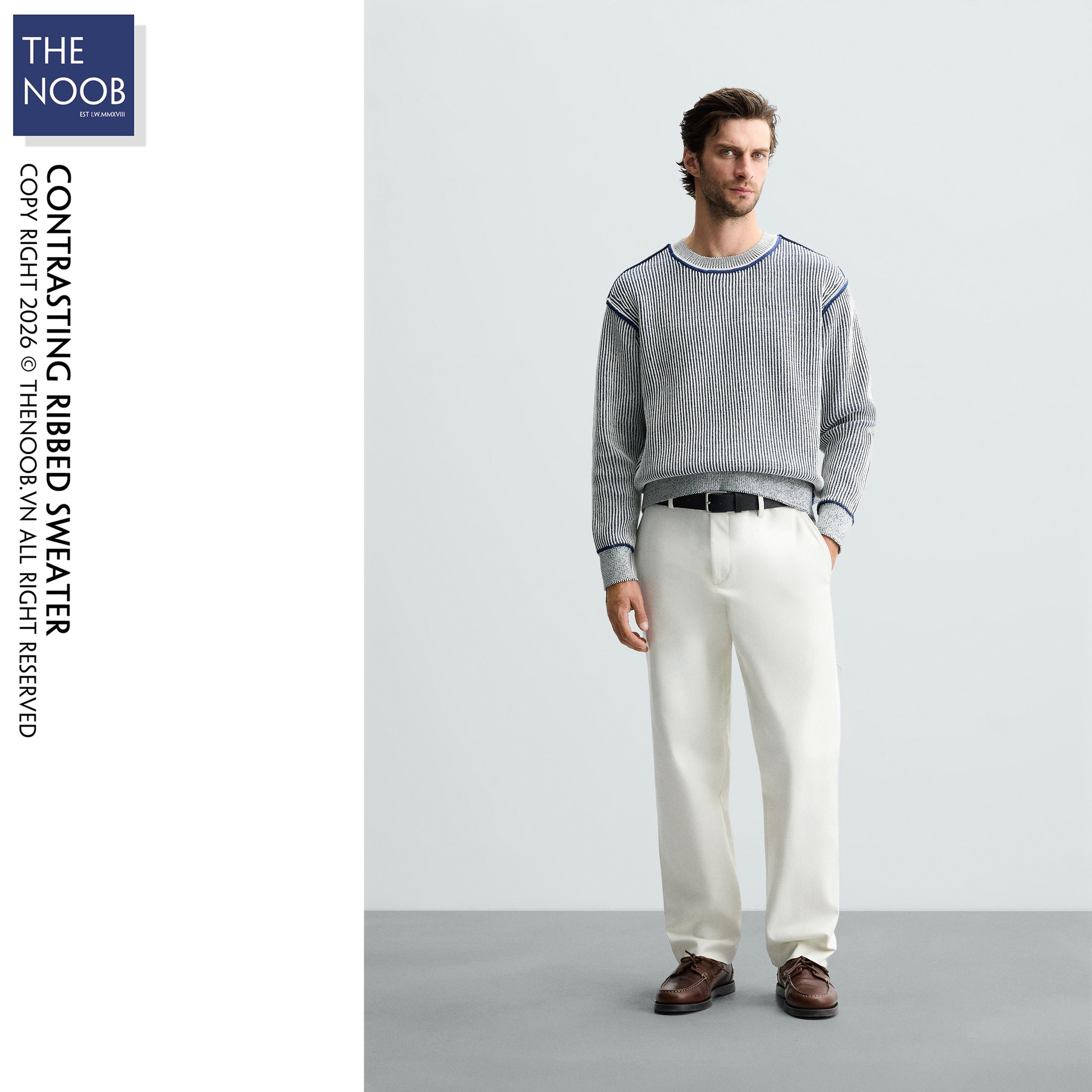 - ZARA MAN - CONTRASTING RIBBED SWEATER