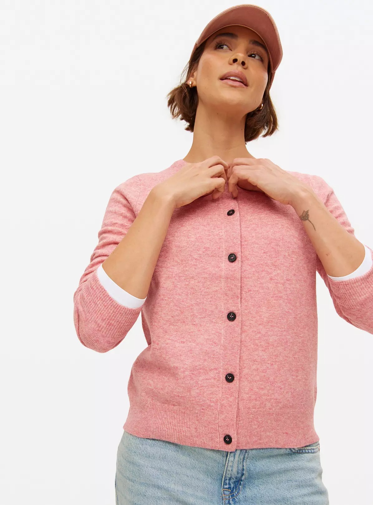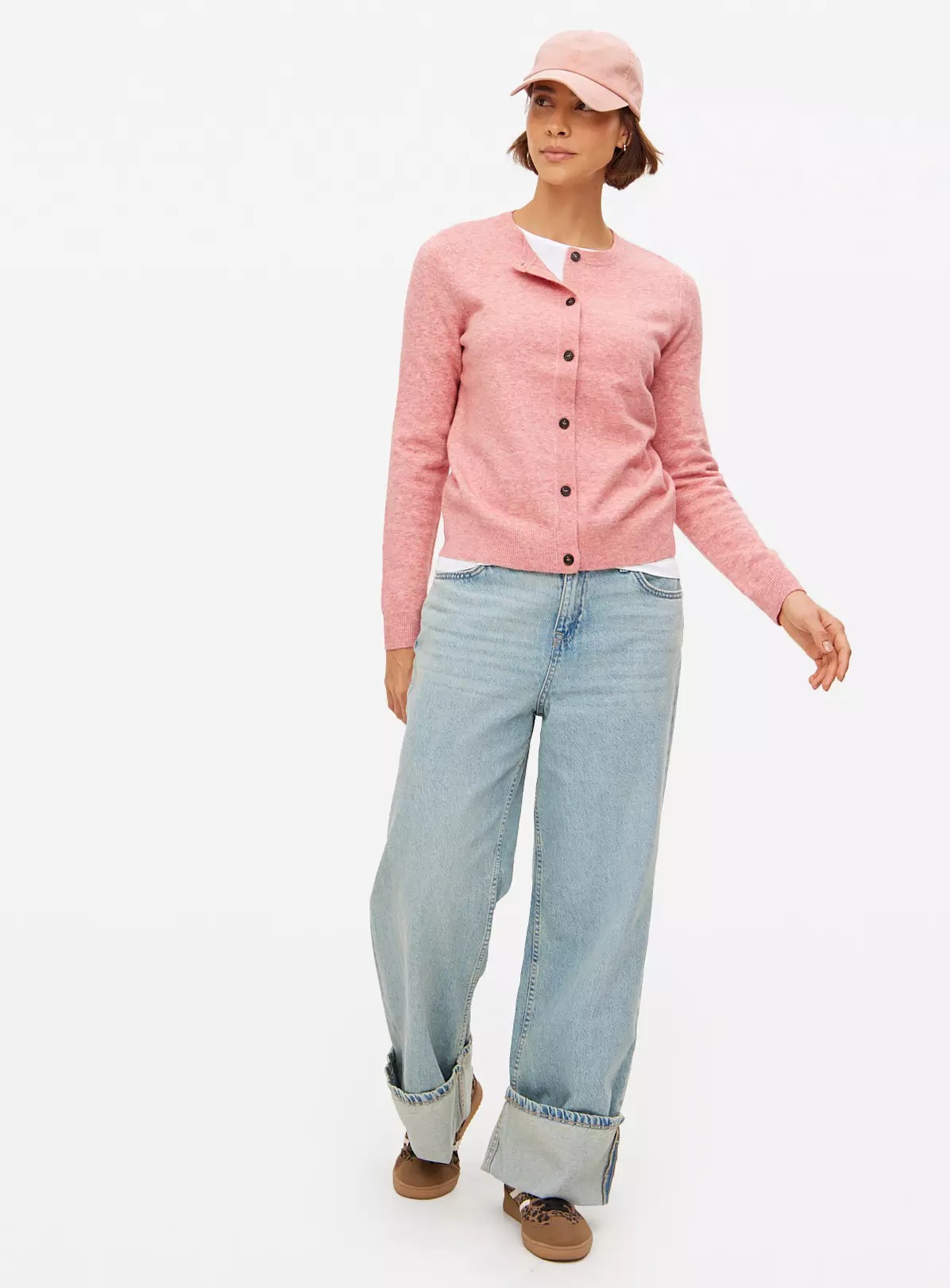- TU CLOTHING - PINK SOFT KNIT CREW NECK CARDIGAN