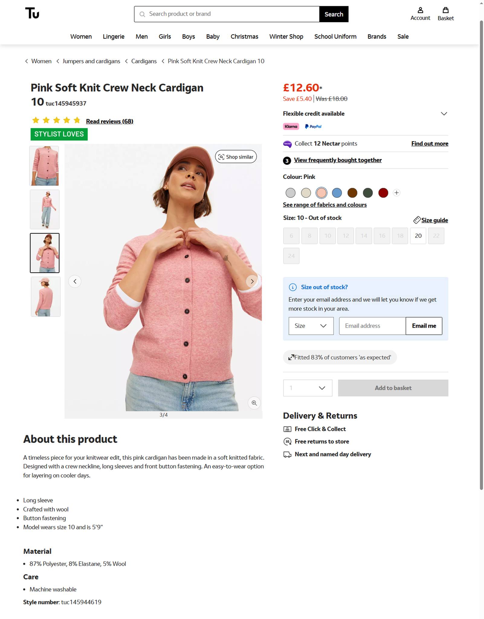- TU CLOTHING - PINK SOFT KNIT CREW NECK CARDIGAN