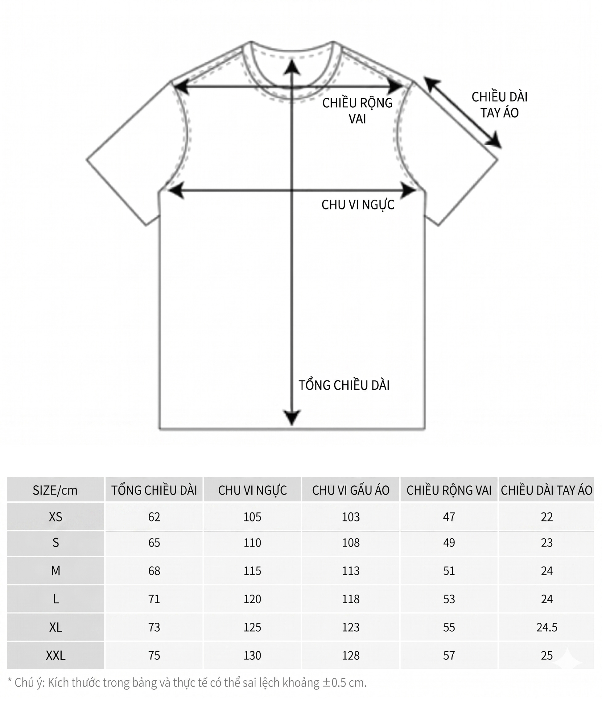 - Do not iron on print or decoration / Không ủi lên hình in/logo