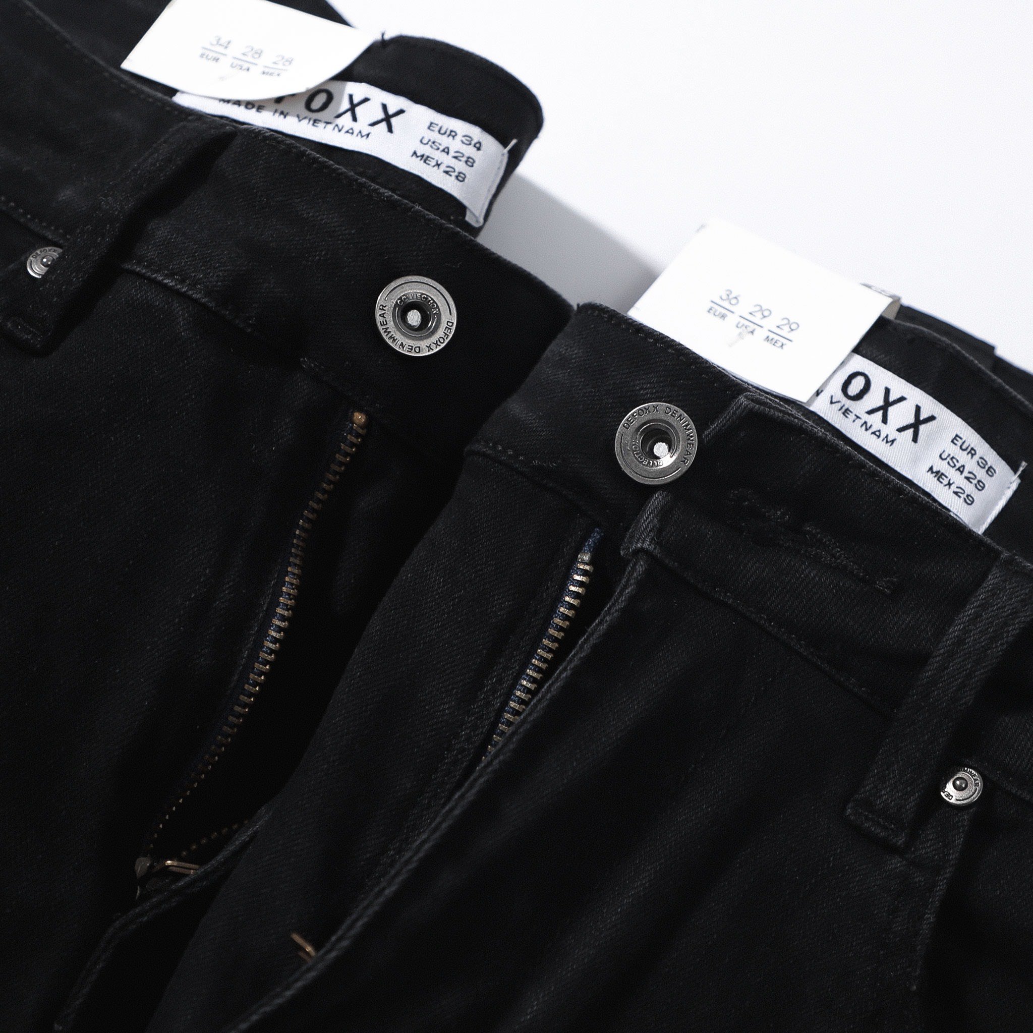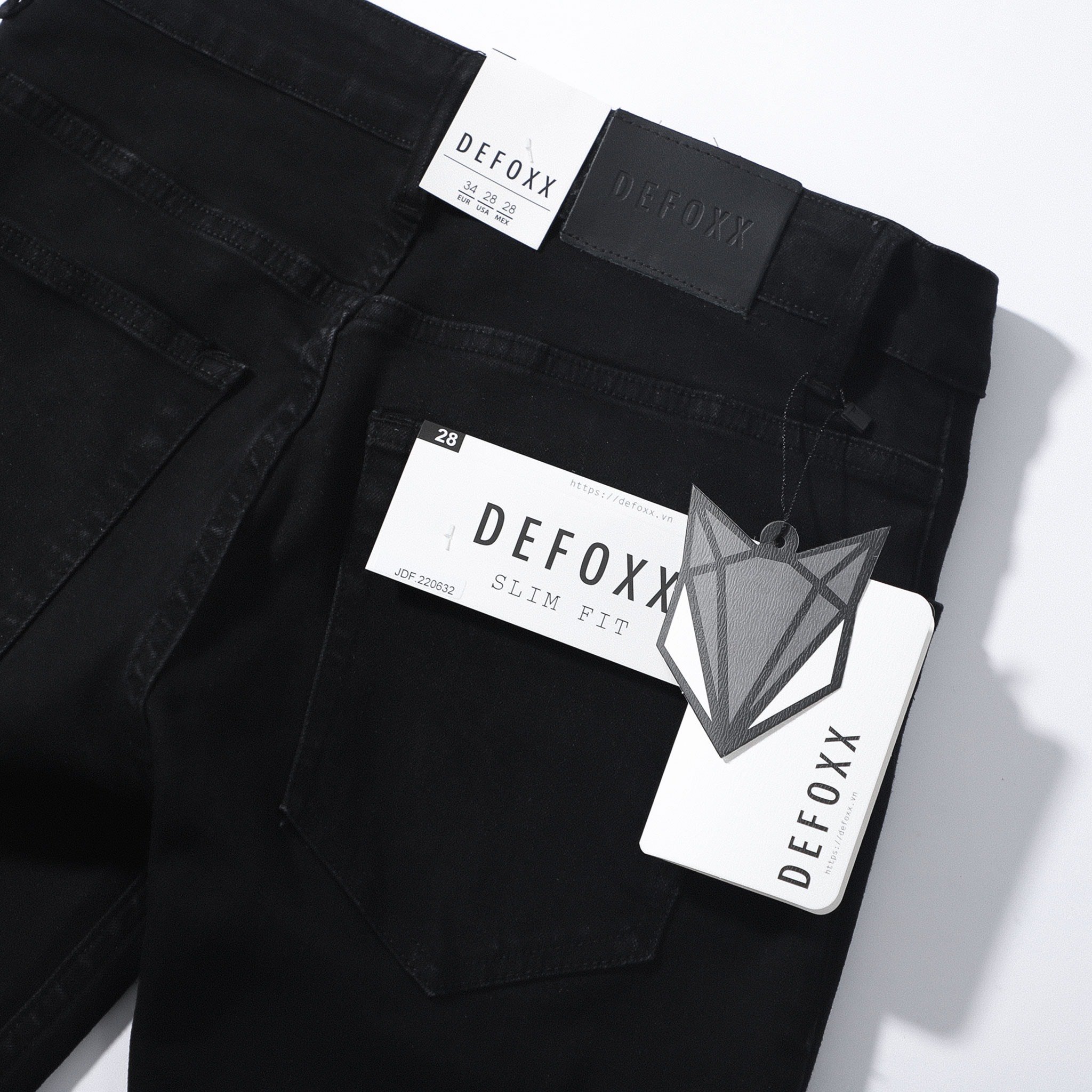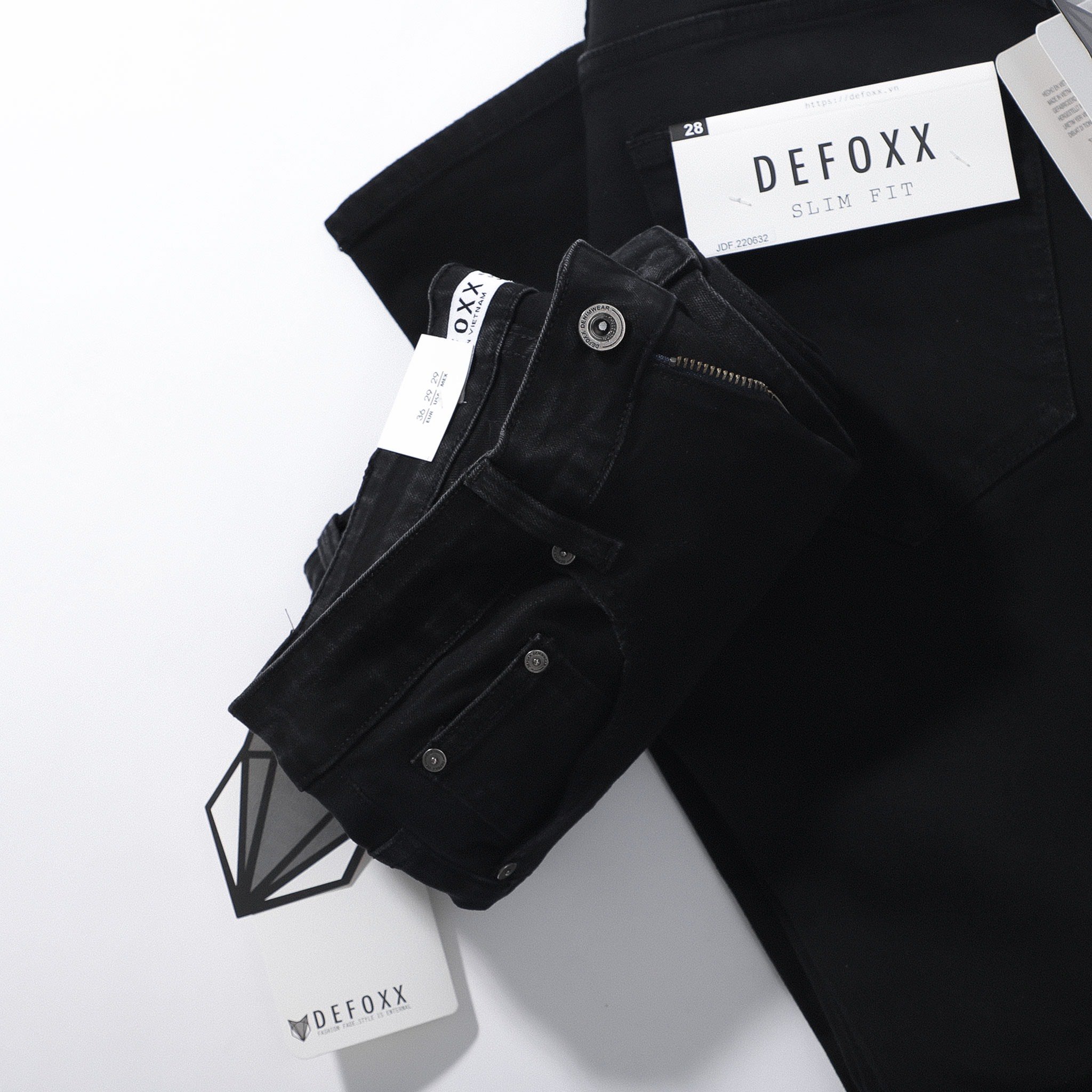 - Quần chất liệu denim có co dãn, dầy dạn và nặng tay, là dòng sản phẩm classic của Defoxx, tỷ lệ thành phần vải : 92% Cotton + 6% Poly + 2% Spandex