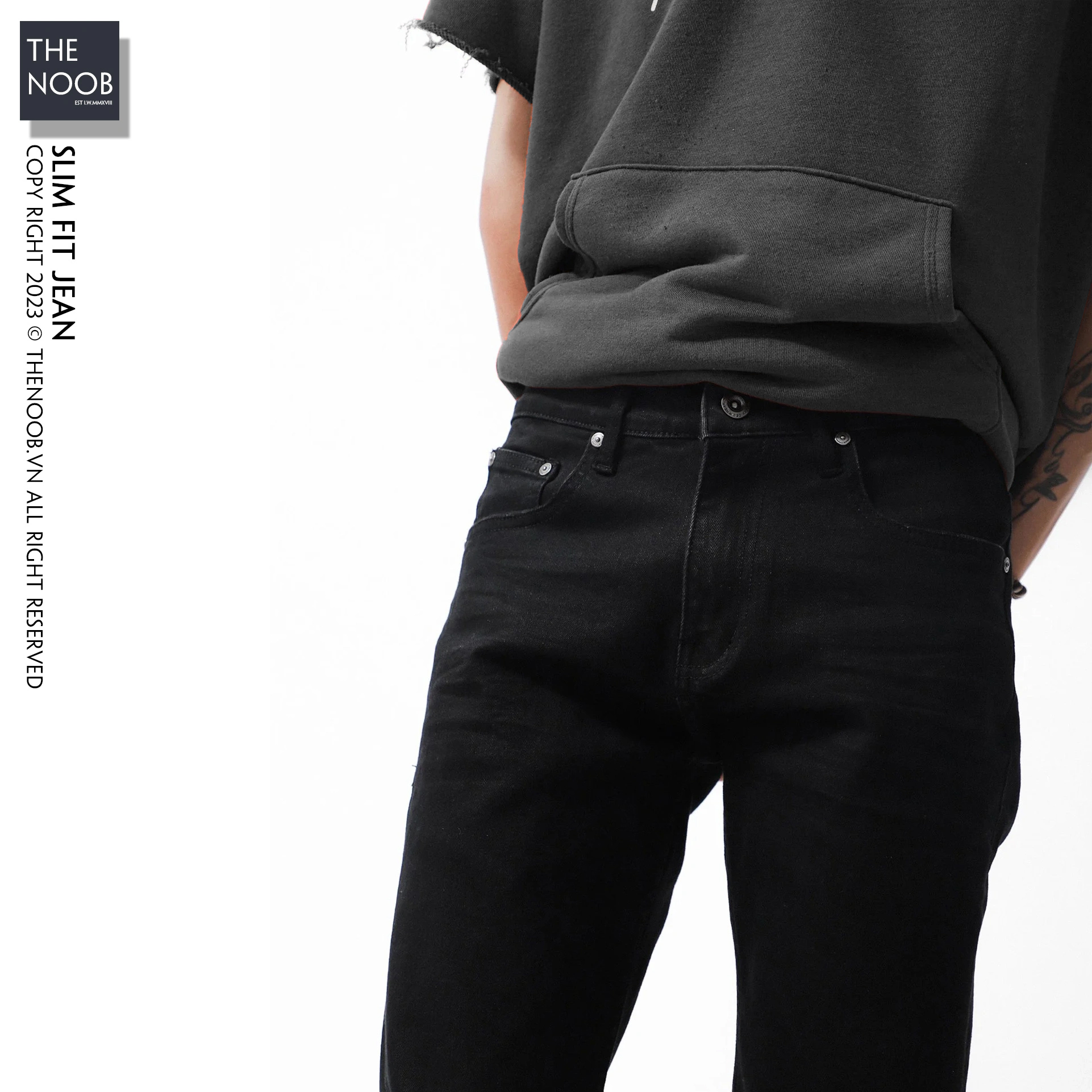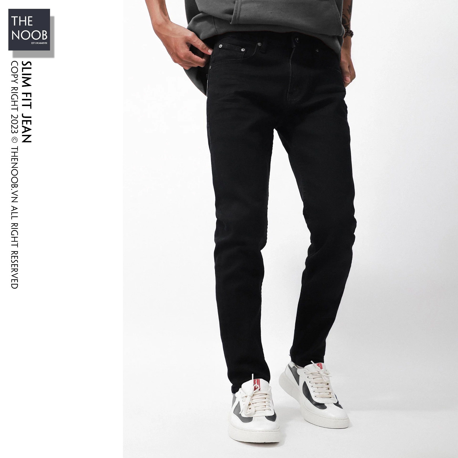 - Form quần slim fit ôm nhưng không bó sát, thiết kế cơ bản phù hợp với nhiều dạng outfit