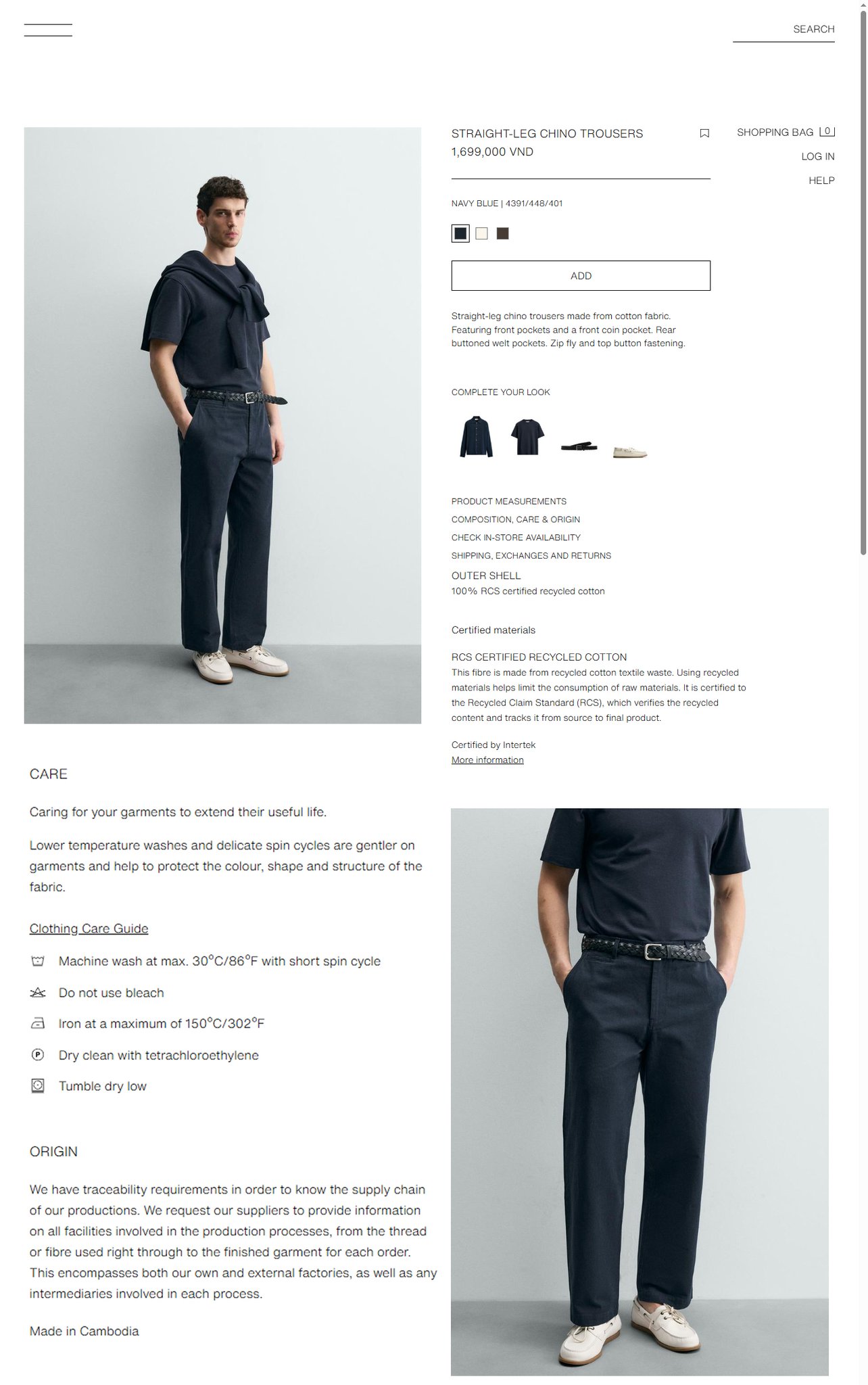 - Quần chất liệu 100% cotton RCS (tái chế) vải khaki dầy dạn trì tay, vật liệu thông thoáng thân thiện với cơ thể,