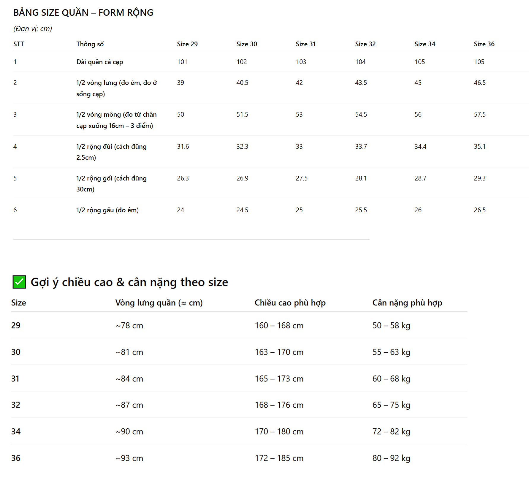 - Body dưới 75kgs mặc size 32 trở xuống tùy cao tùy phong cách mặc