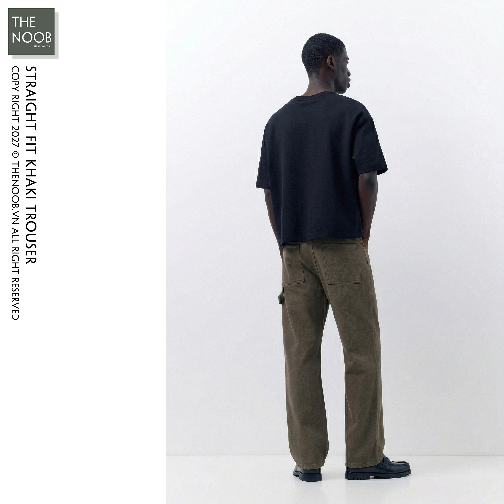 • Dáng quần đứng ống, không rộng nhưng cũng không gọn như dòng slim-fit. Thiết kế quần có điểm nhấn với dây nối chéo từ sau túi ra cạnh quần
