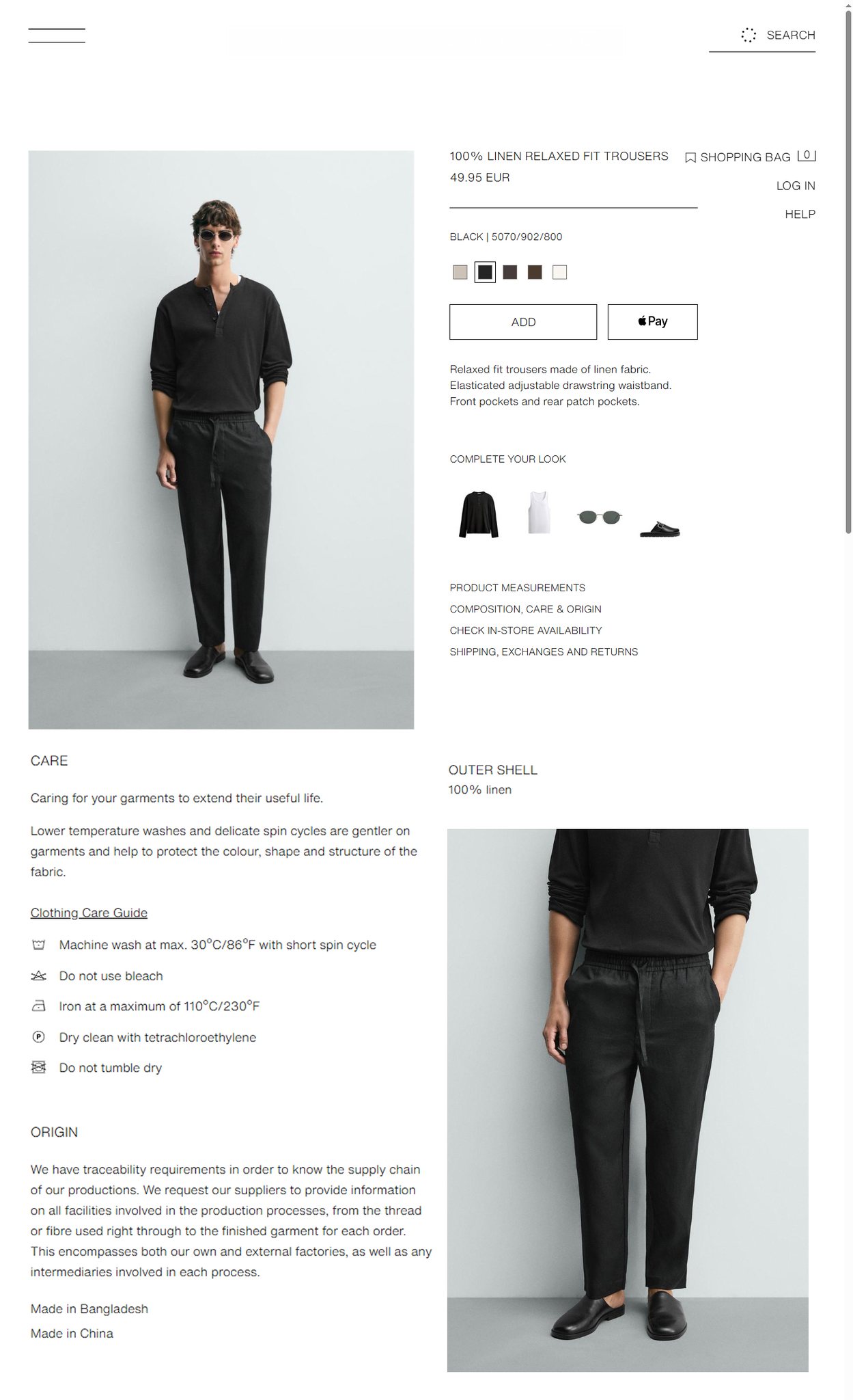 - ZARA MAN - RELAXED FIT 100% LINEN TROUSER