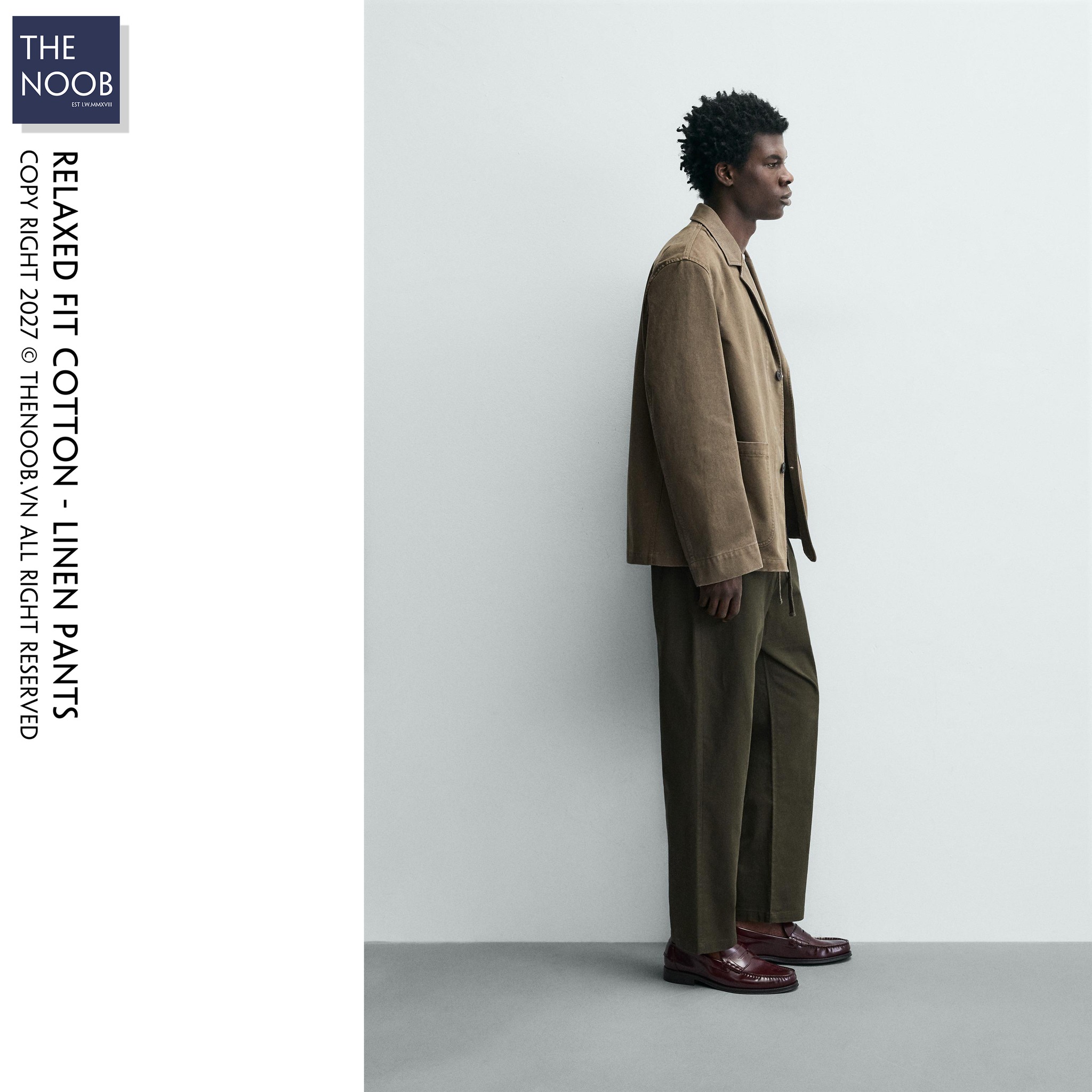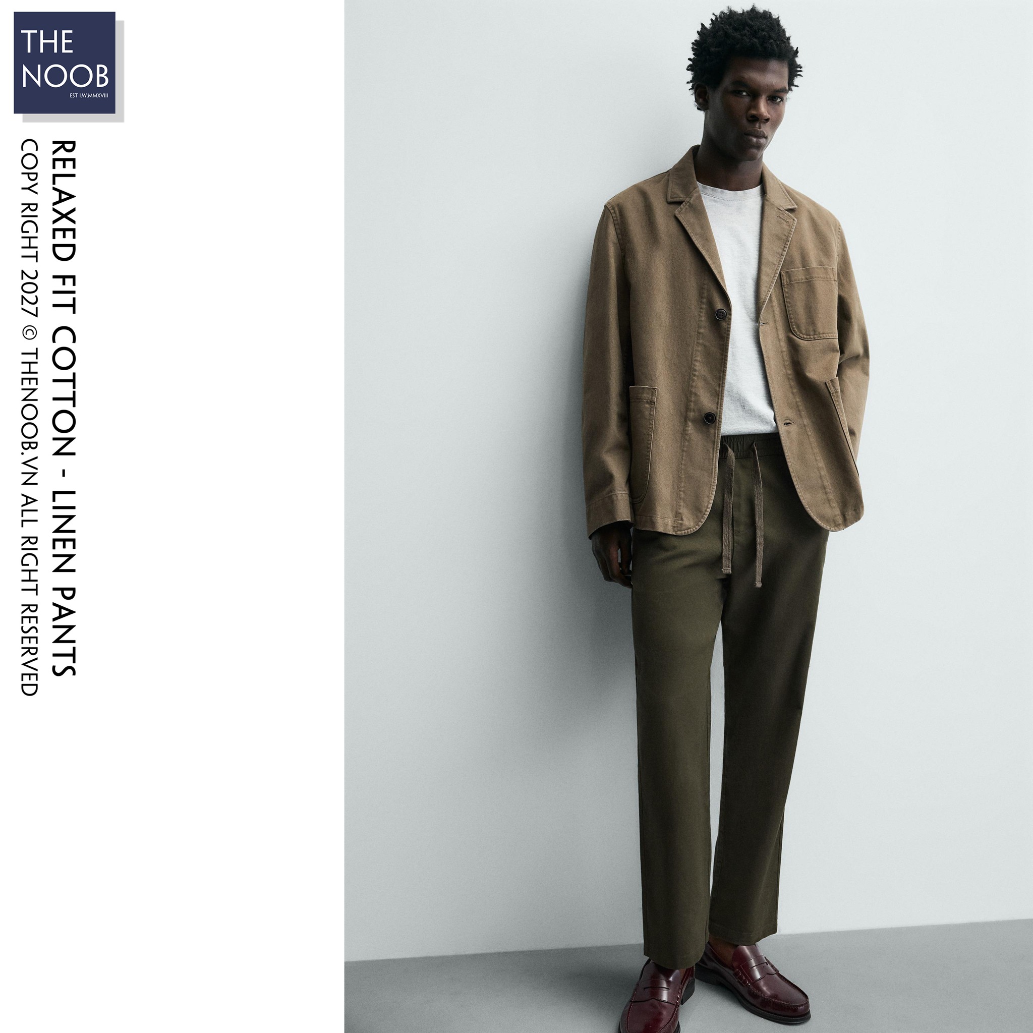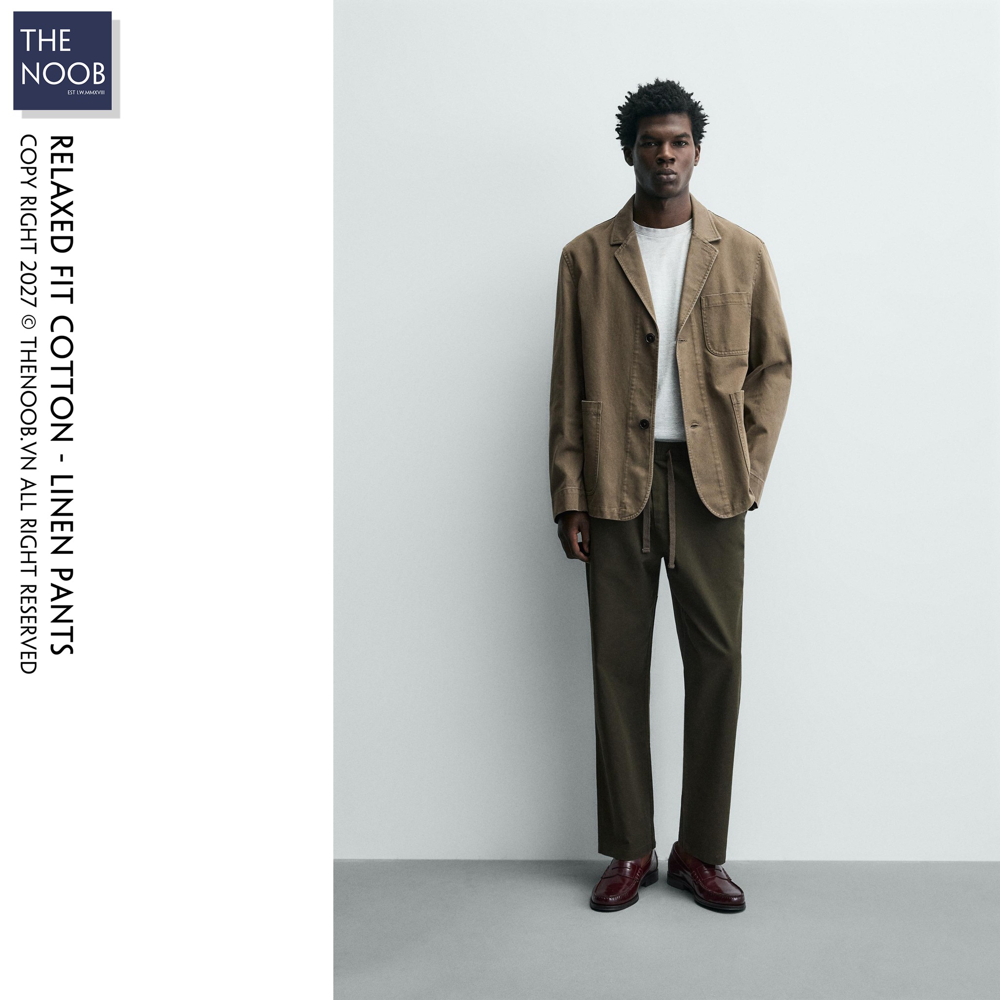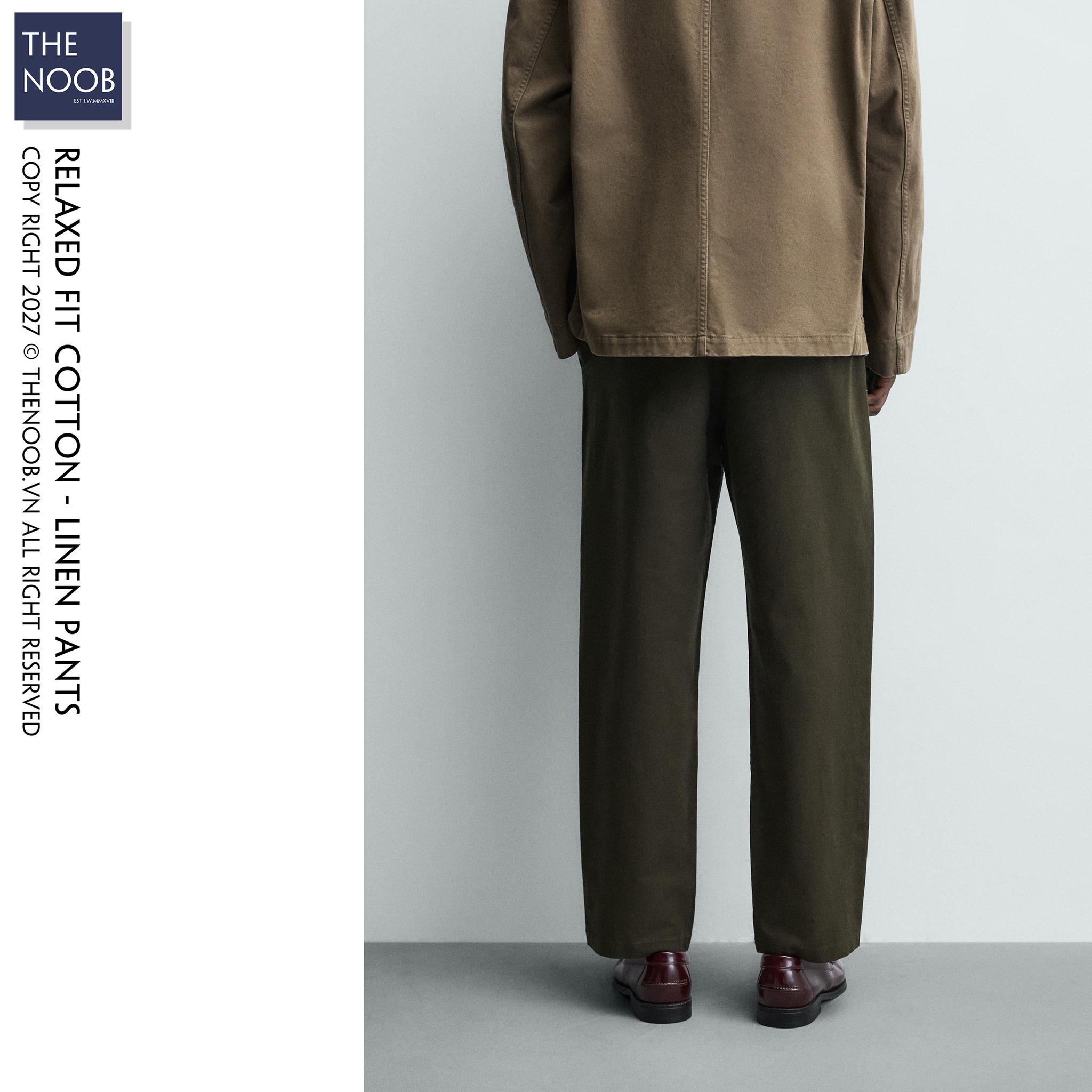 - Quần có thành phần chất liệu dệt từ 86% cotton (RCS) 14% linen, bề mặt vải pha sợi cotton mật độ cao cho quần bền bỉ với tác động ngoại quan, nhưng mang các đặc điểm mềm mại nhẹ nhàng của đũi. Với chất liệu đến từ tự nhiên độ co dãn của quần là không nhiều